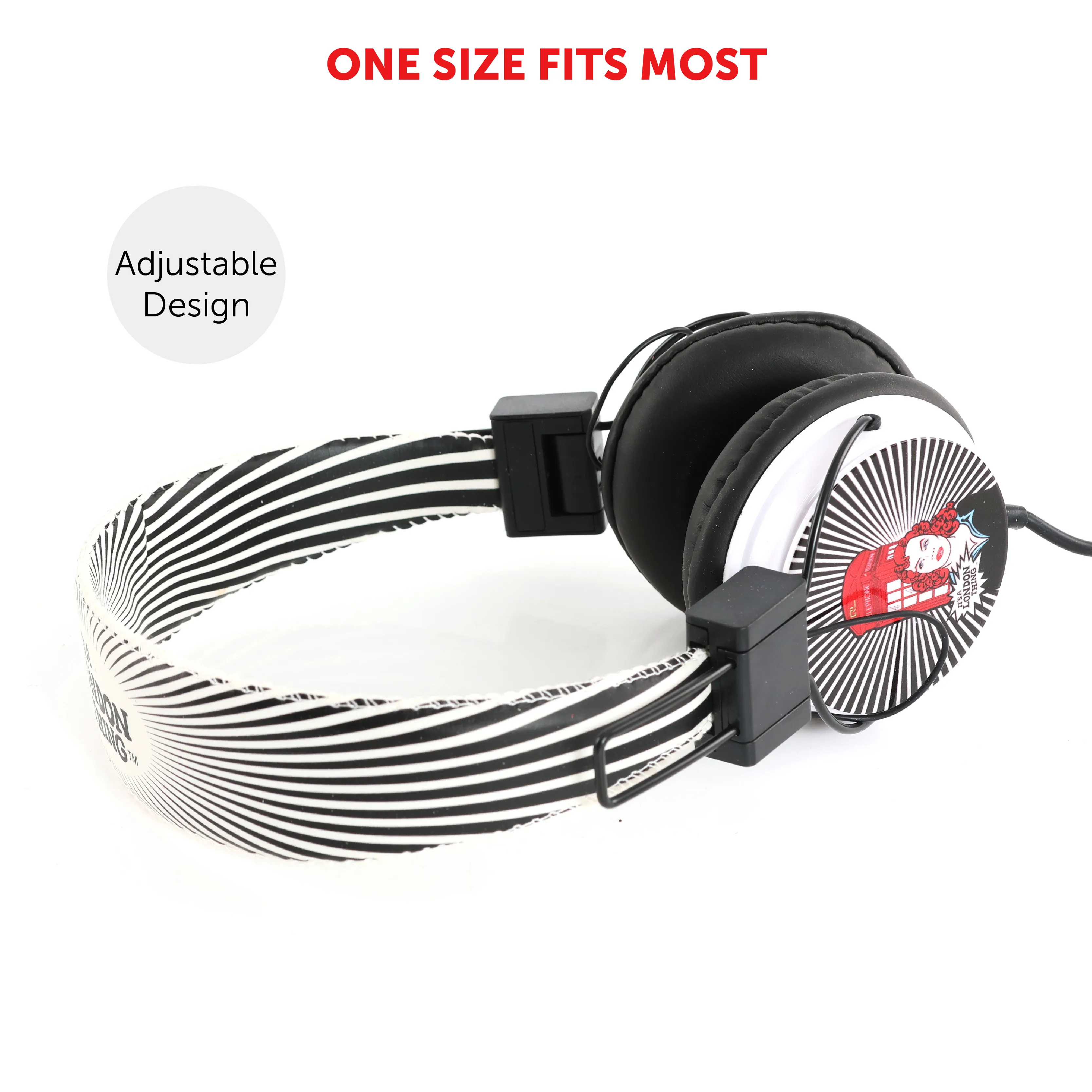 Stylish Black and White adjustable over-ear headphones, featuring “It’s a London Thing” printed on the headband with bold Pop Art illustrations. These foldable headphones include an AUX port for use with phones, laptops, or other devices—perfect for music, podcasts, or adding authenticity to your costume.