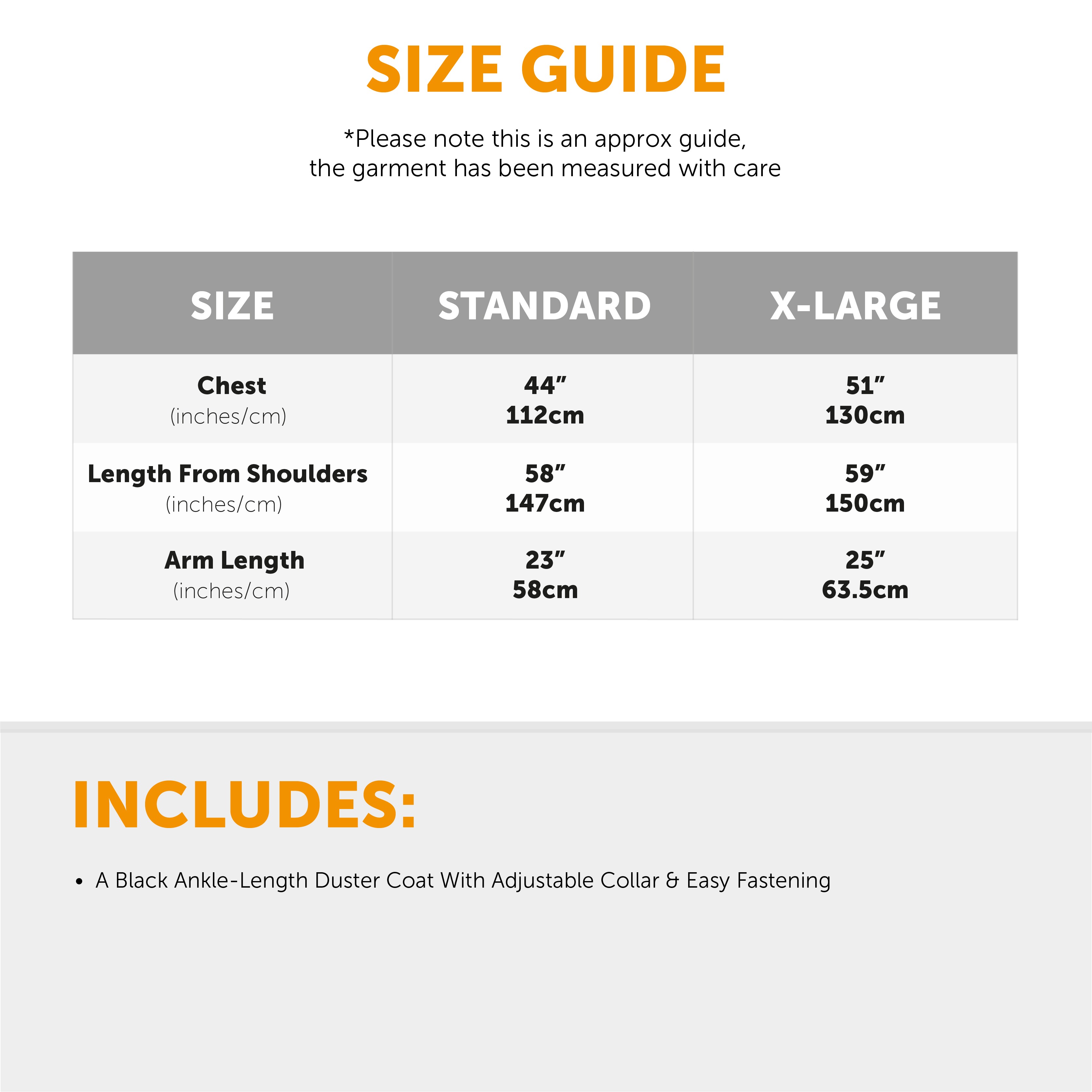 - Standard: Chest 44" (112cm) | Length 58" (147cm) | Arm Length 23" (58cm)