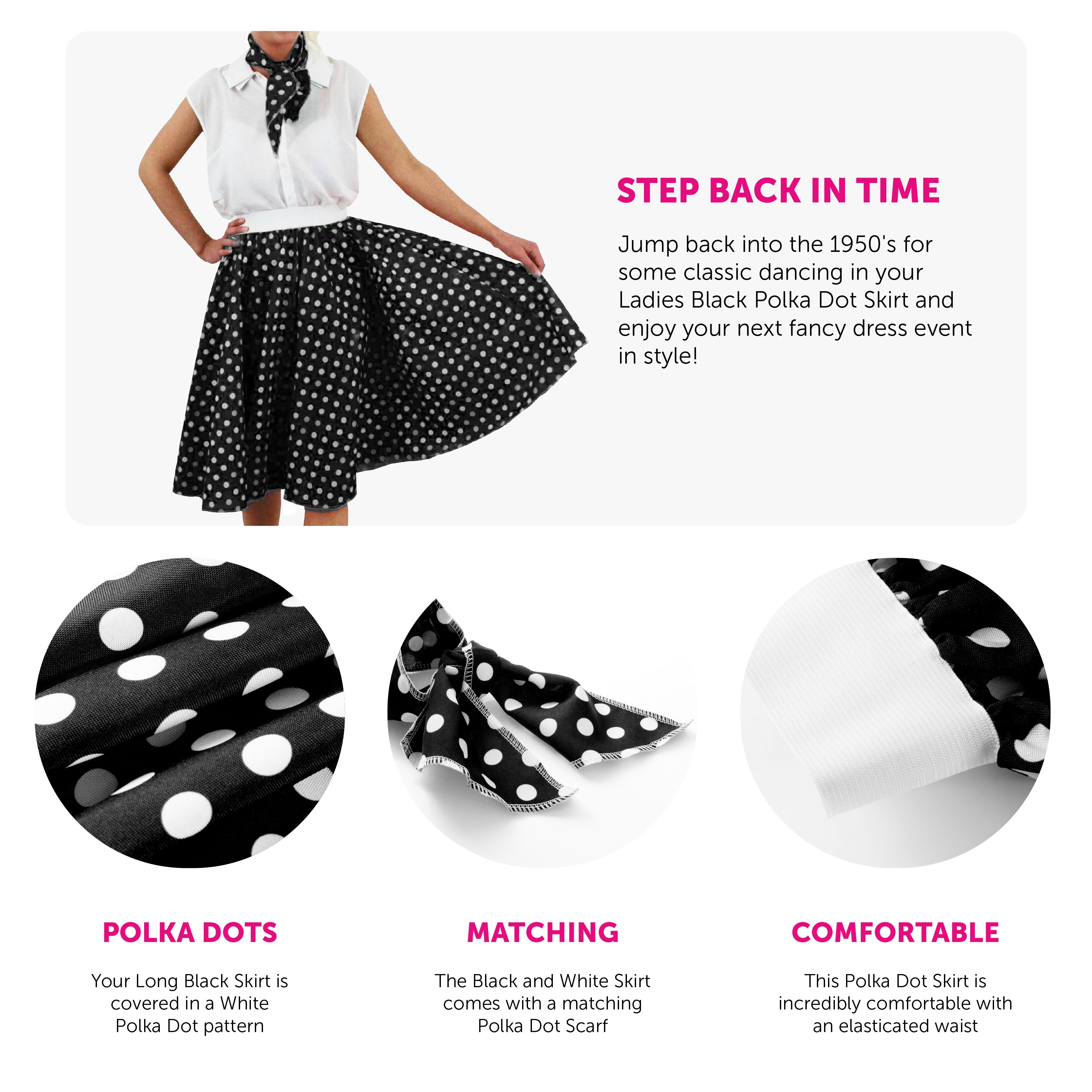 PERFECT FOR 1950'S & DANCE FANCY DRESS: Whether you’re dressing up for the times in the 1950's or in need of a dancing outfit for a stage production, then our Ladies Black Polka Dot Skirt is the perfect selection for you!
