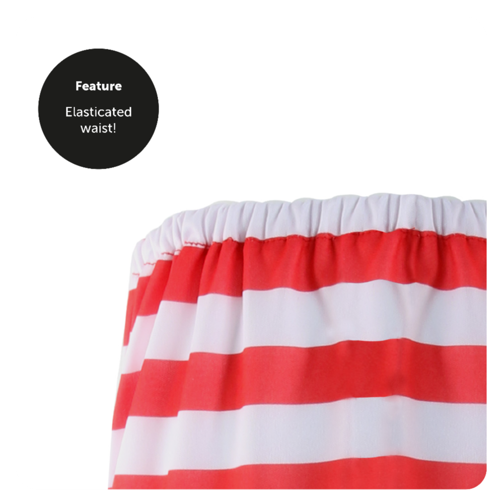 COSTUME INCLUDES: Your Boys Victorian Bather Costume will include a Stiped Red and White Victorian Bather and a Matching Red and White Bather Trousers, a perfect and simple classic style for any Victorian day!