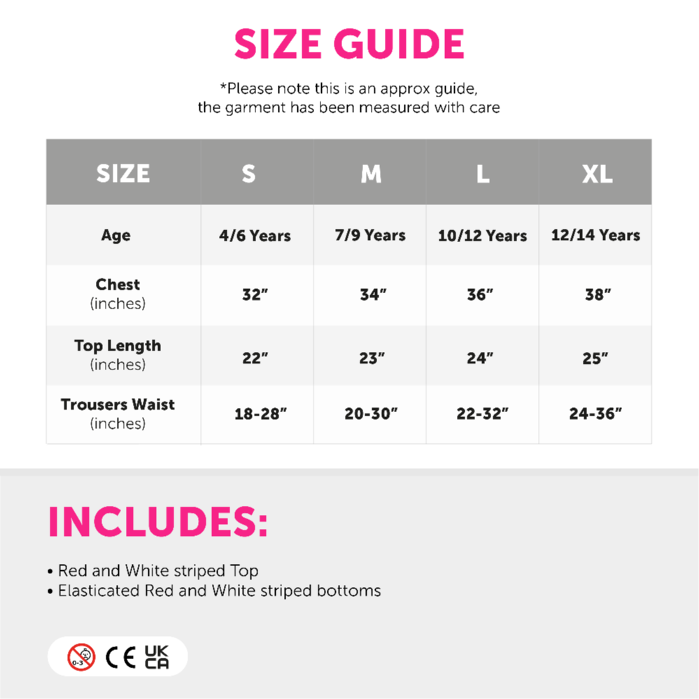 Medium - 7-9 Years: Top - Chest: 34"/86cm, Length: 23"/58cm | Trousers - Waist: 20-30"/51-76cm, Inside Leg: 16"/41cm