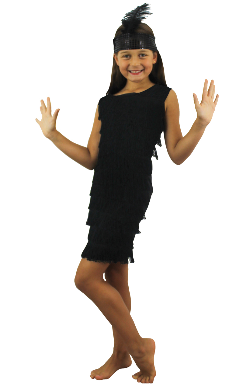 Childs Black Front Fringed Flapper Dress £12.99