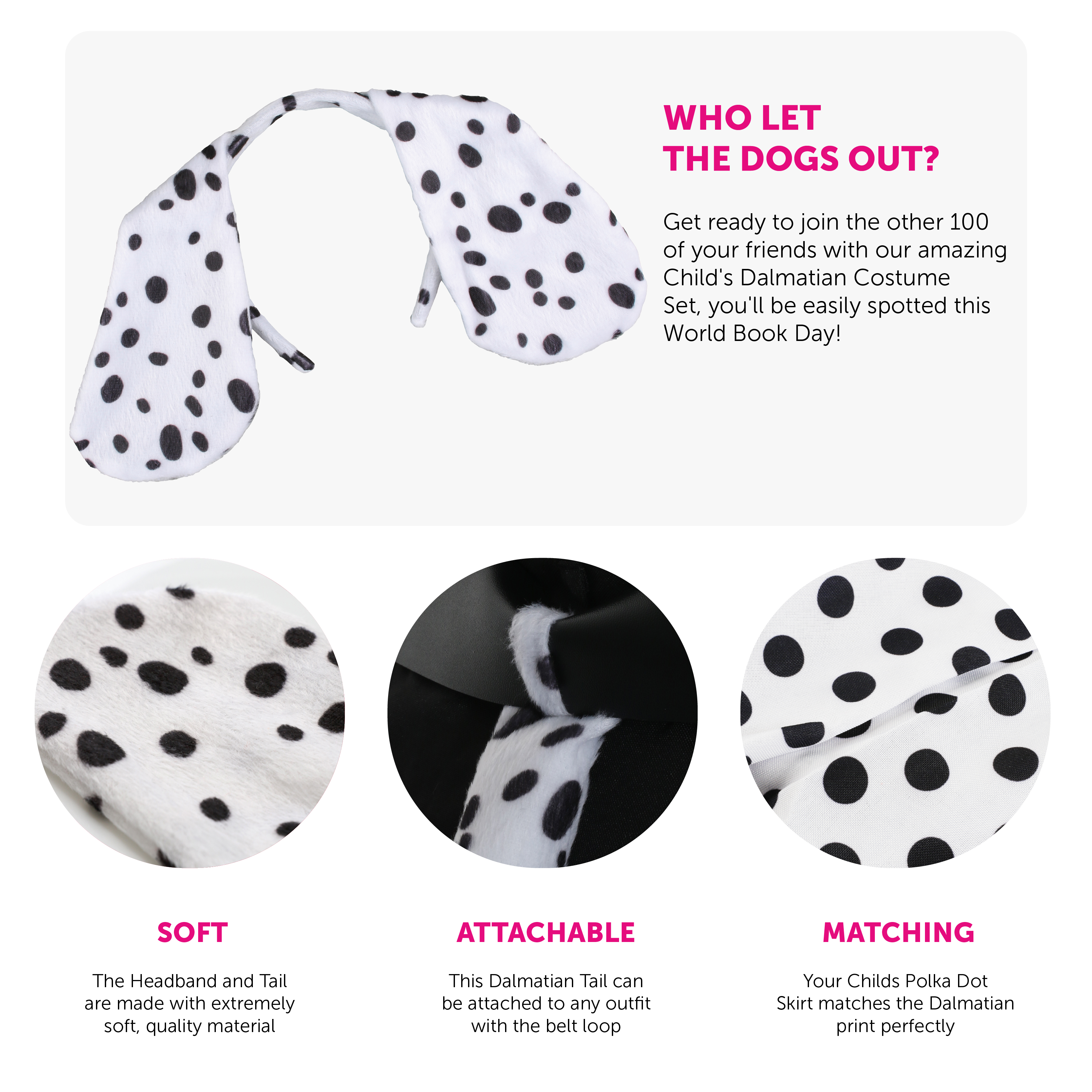 GREAT QUALITY OUTFIT: Not only does this Skirt have a great design, but it is also incredibly comfortable to wear with its matching Headband and Tail, finishing your Dalmatian look off and making your Child look the best this World Book Day!