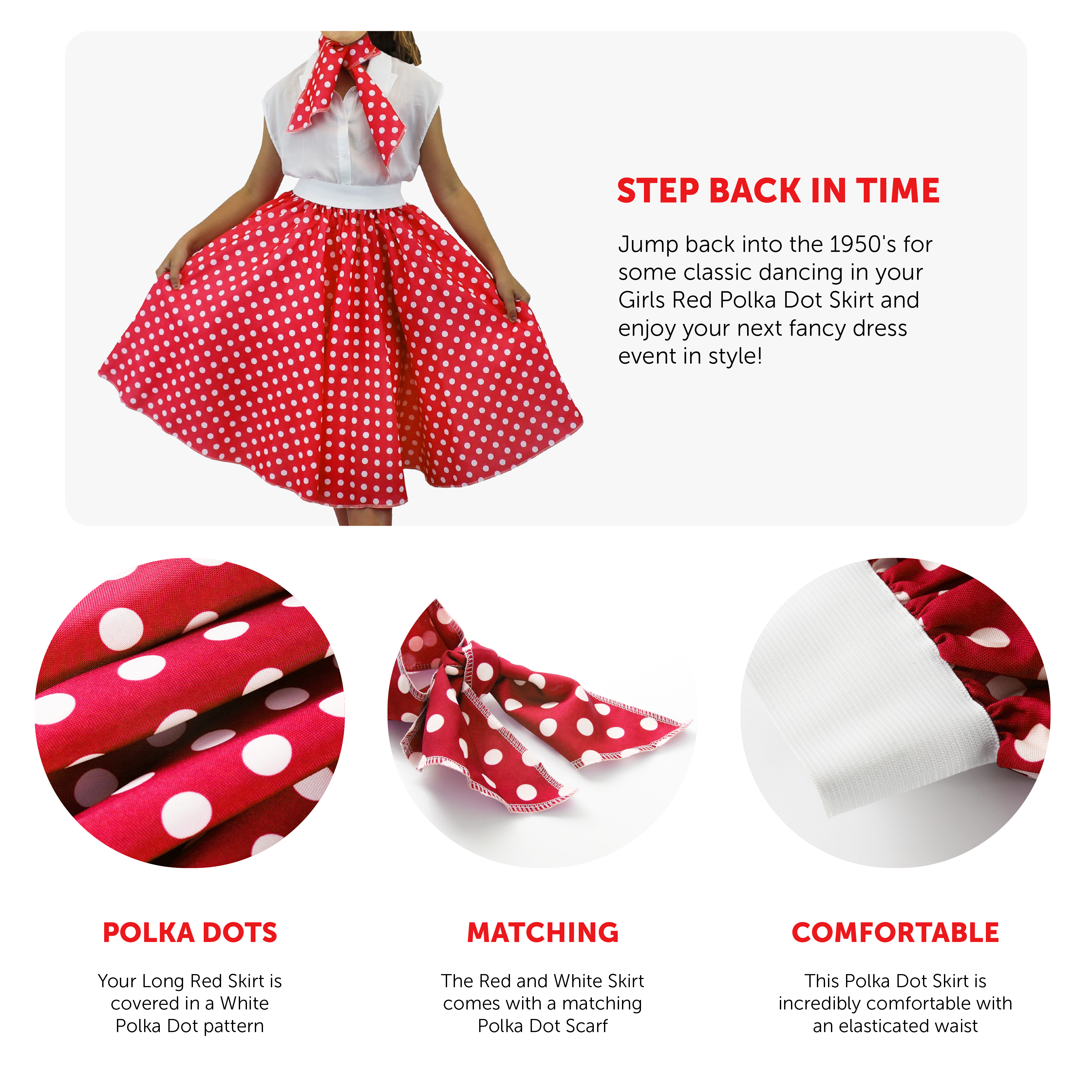 PERFECT FOR 1950'S & DANCE FANCY DRESS: Whether you’re dressing up for the times in the 1950's or in need of a dancing outfit for a stage production, then our Girls Red Polka Dot Skirt is the perfect selection for you!
