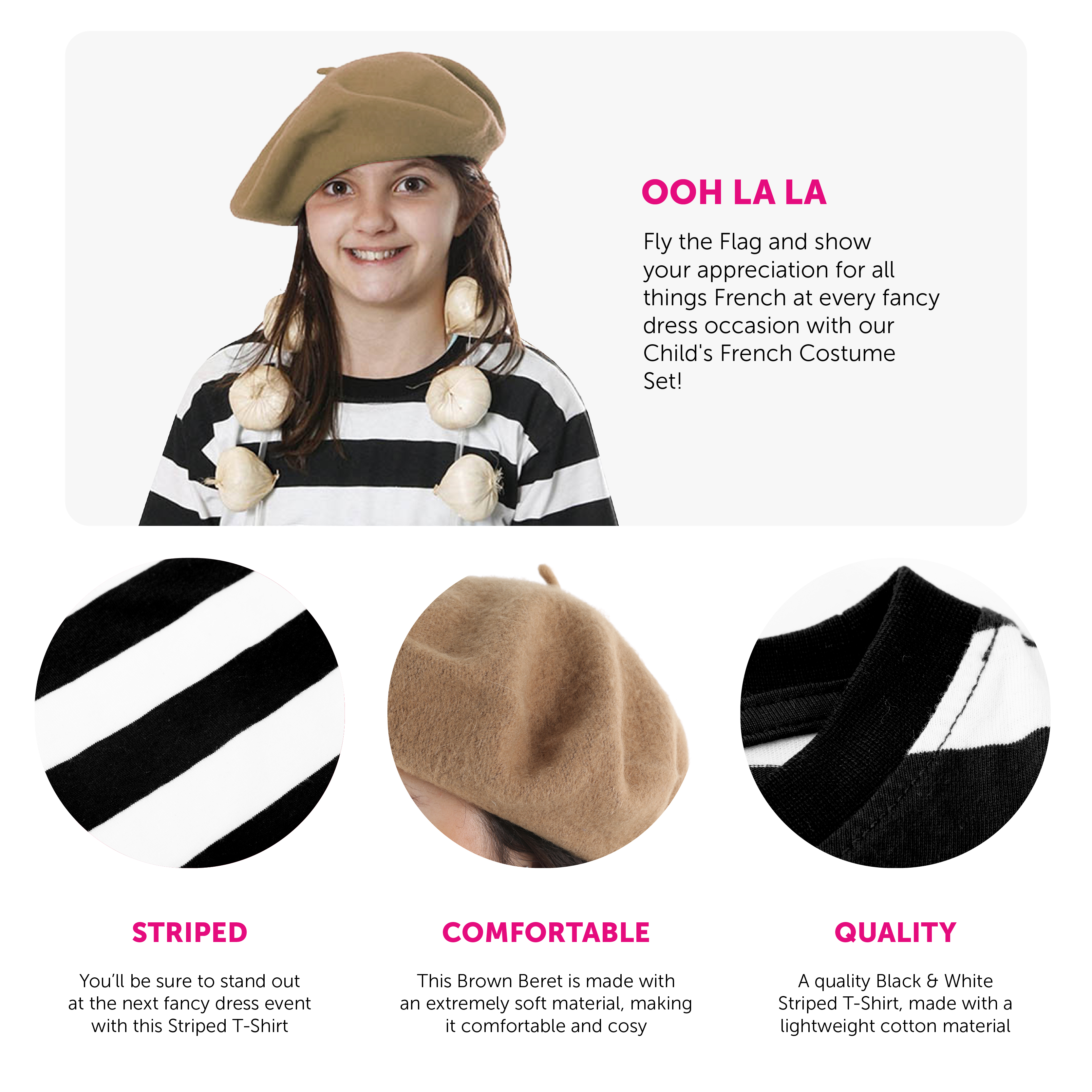 PERFECT FOR THEMED FANCY DRESS: If you’re attending a French themed party or event at School, or for any other fancy dress occasion our Child's French Costume Set is the perfect choice for you!