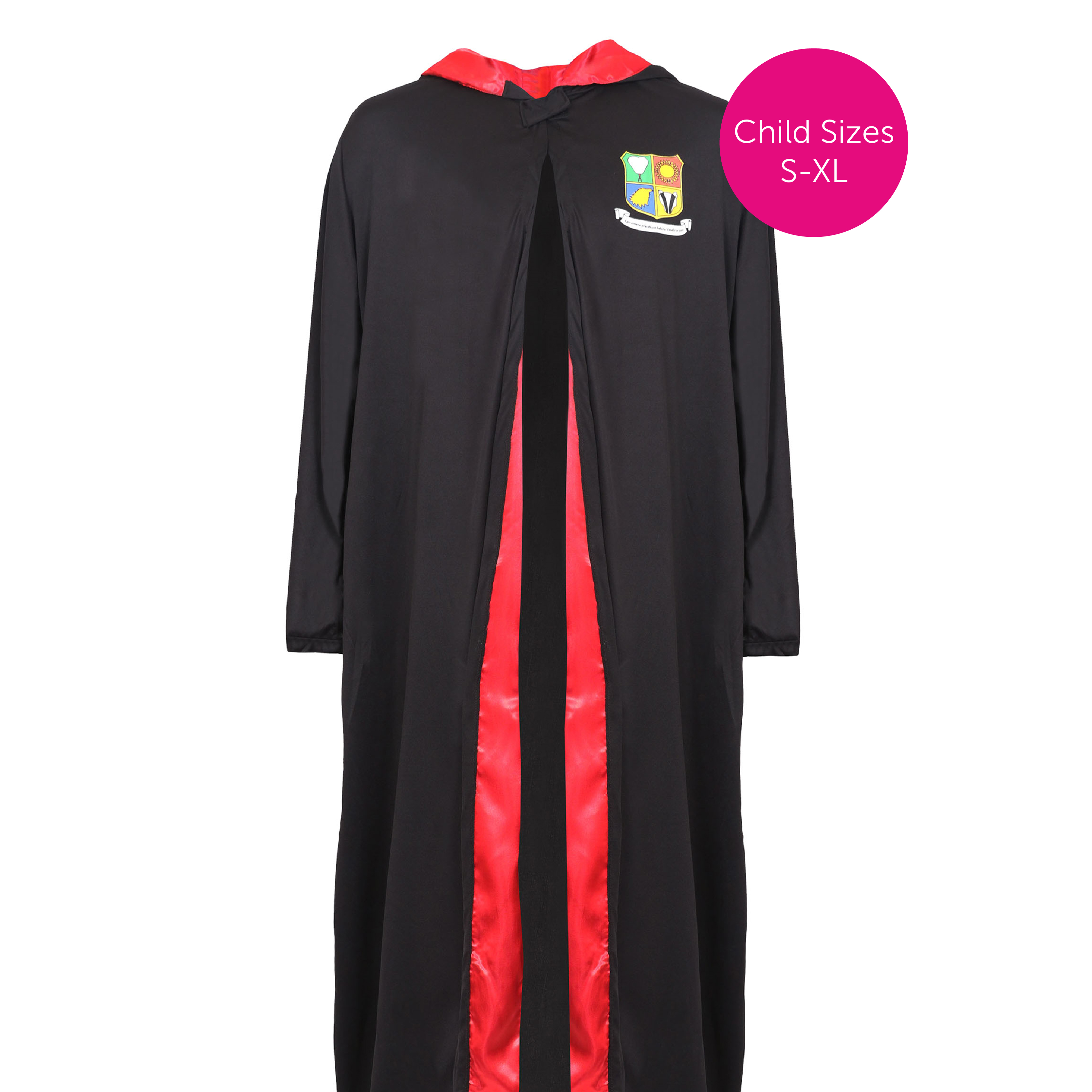 COSTUME DETAILS: Your Child’s Wizard Robe costume includes a Black Robe with Red Lining & a printed School Badge, a classic and iconic look for all young aspiring Wizards to wear proudly!