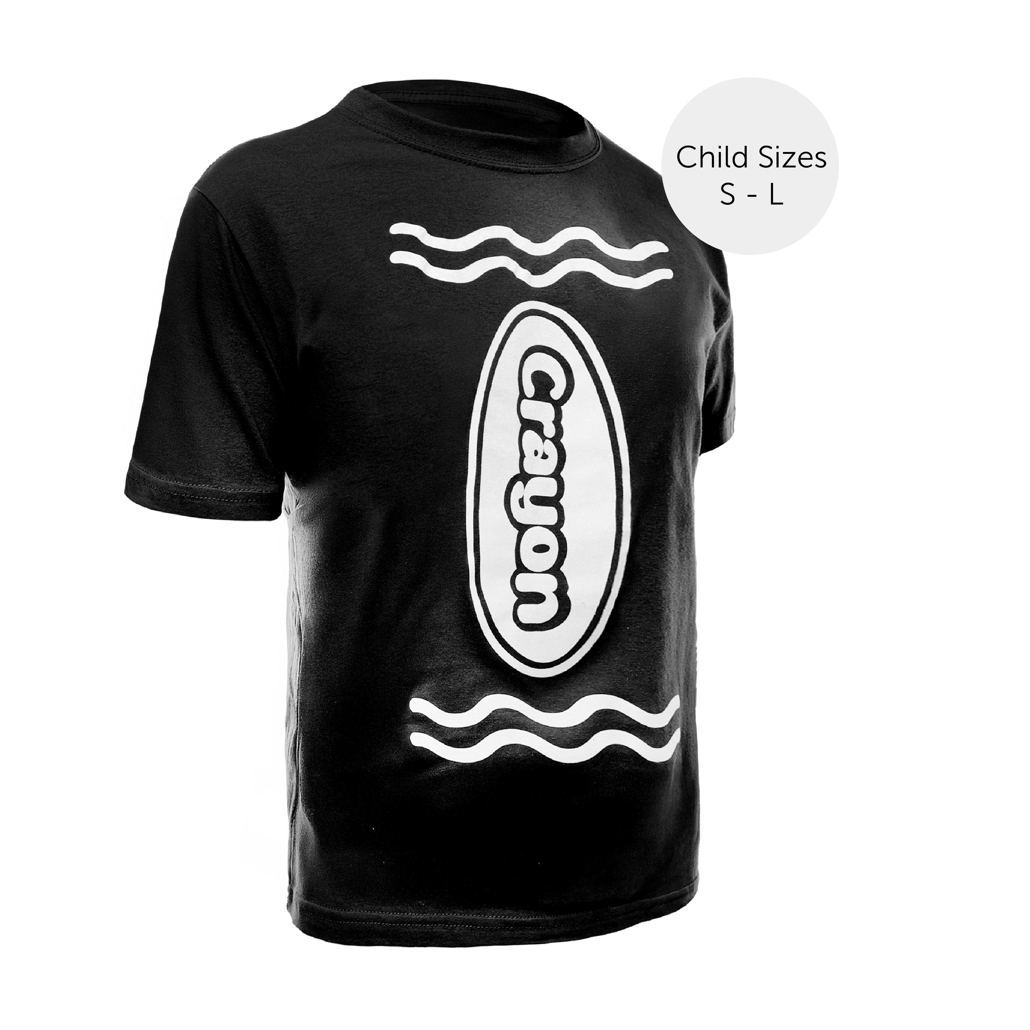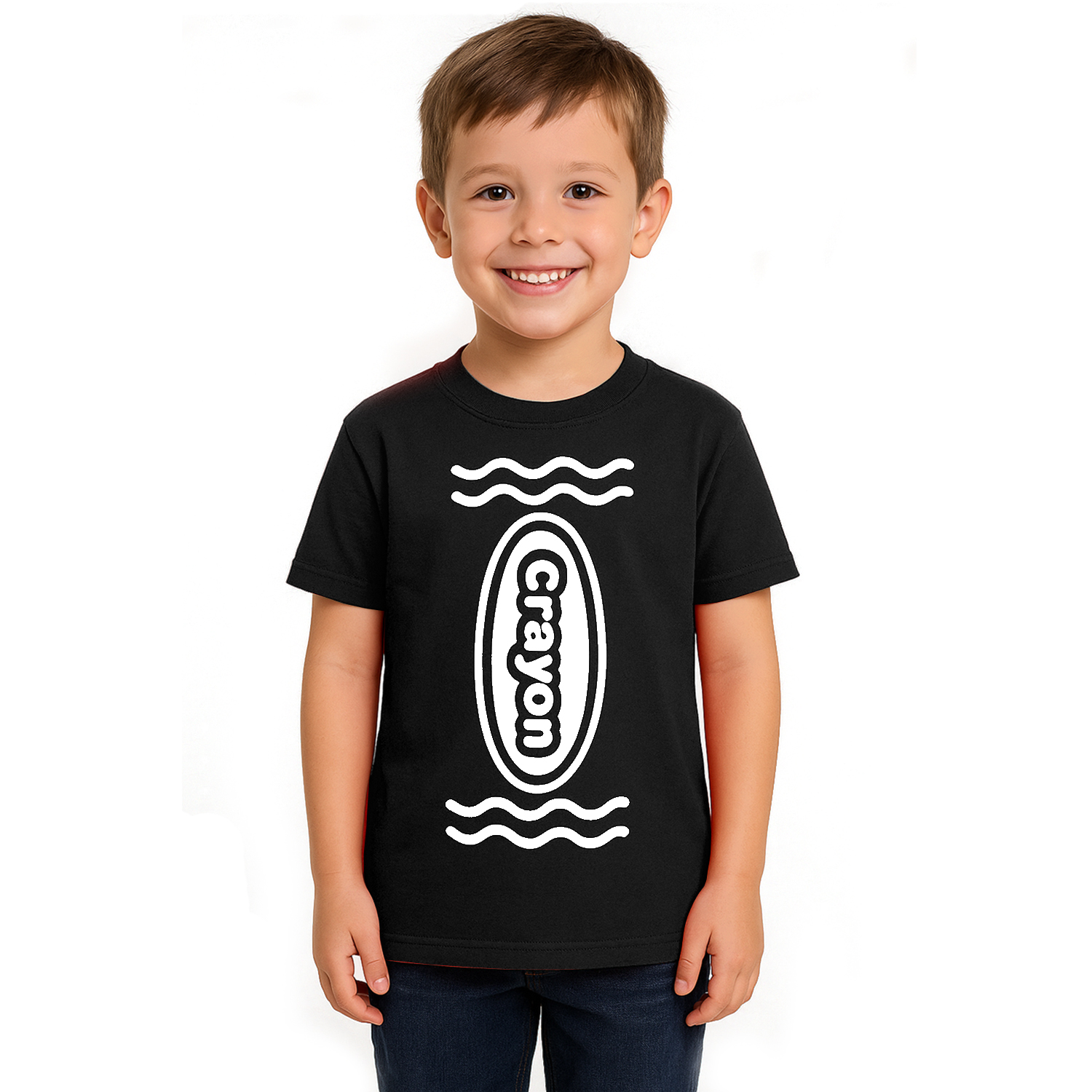 FUN AND CREATIVE DESIGN: This black crayon T-shirt features a bold, eye-catching "Crayon" graphic in white, offering a fun and whimsical twist to your fancy dress costume or casual outfit.