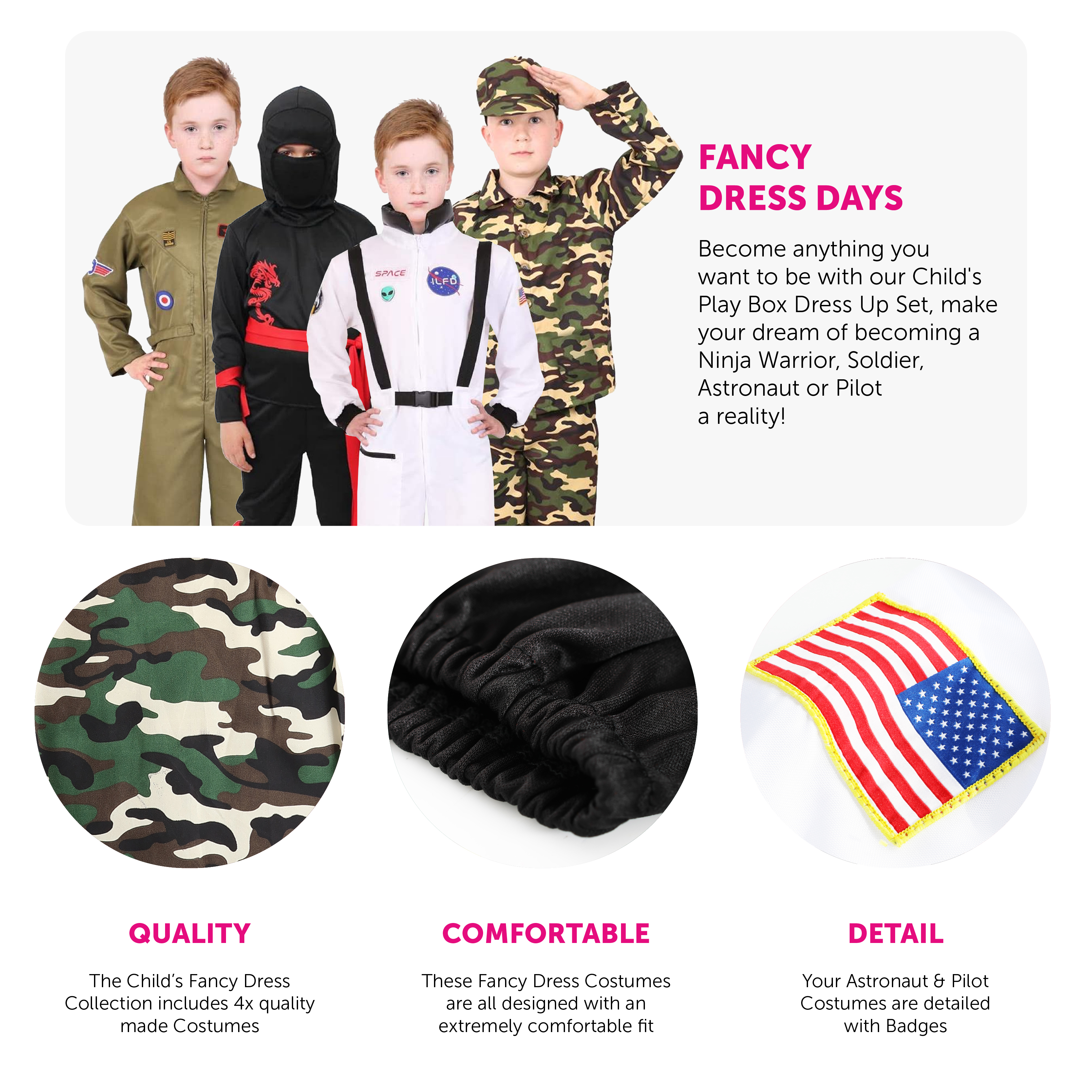 Boys Dress Up Set - Ninja, Soldier, Astronaut & Pilot   £41.99