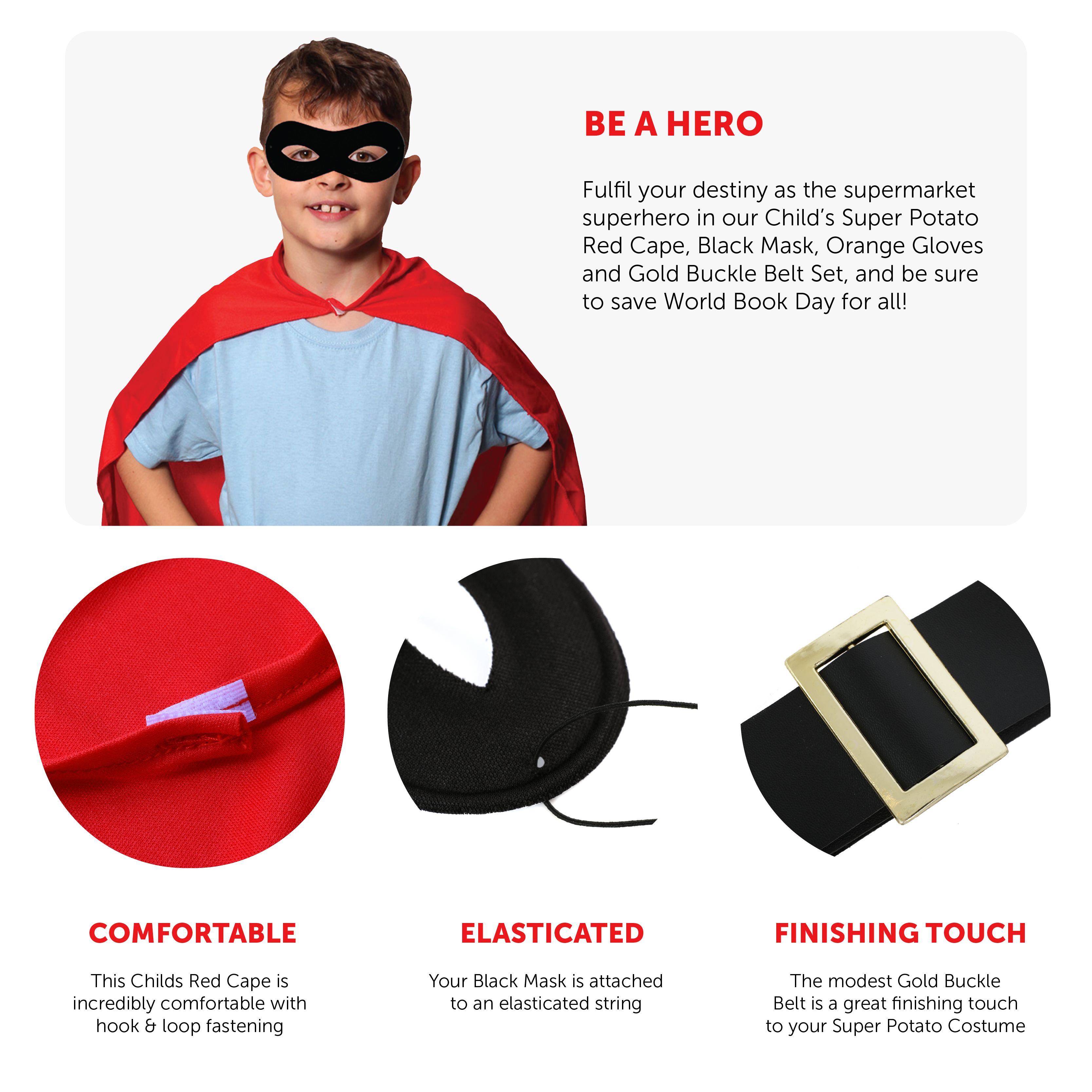 CHILD’S SUPER POTATO COSTUME HERO SET: Fulfill your destiny as the supermarket superhero in our Child’s Super Potato Costume Hero Set for World Book Day!