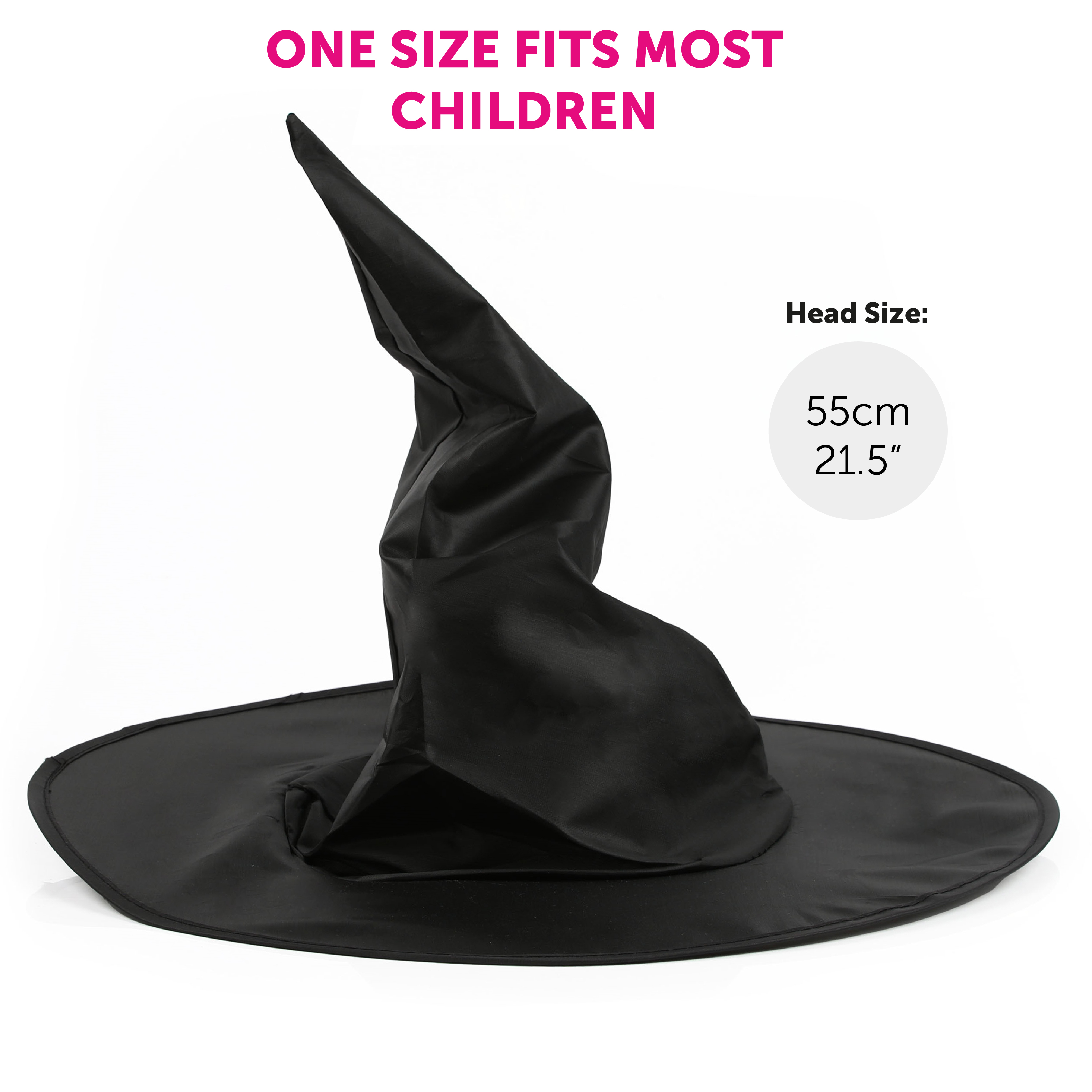 GREAT SIZED HAT: The Black Witches Hat included in this Costume Set is a suitable size for most Children to wear comfortably, with a head size measuring up to 55cm (21.5")
