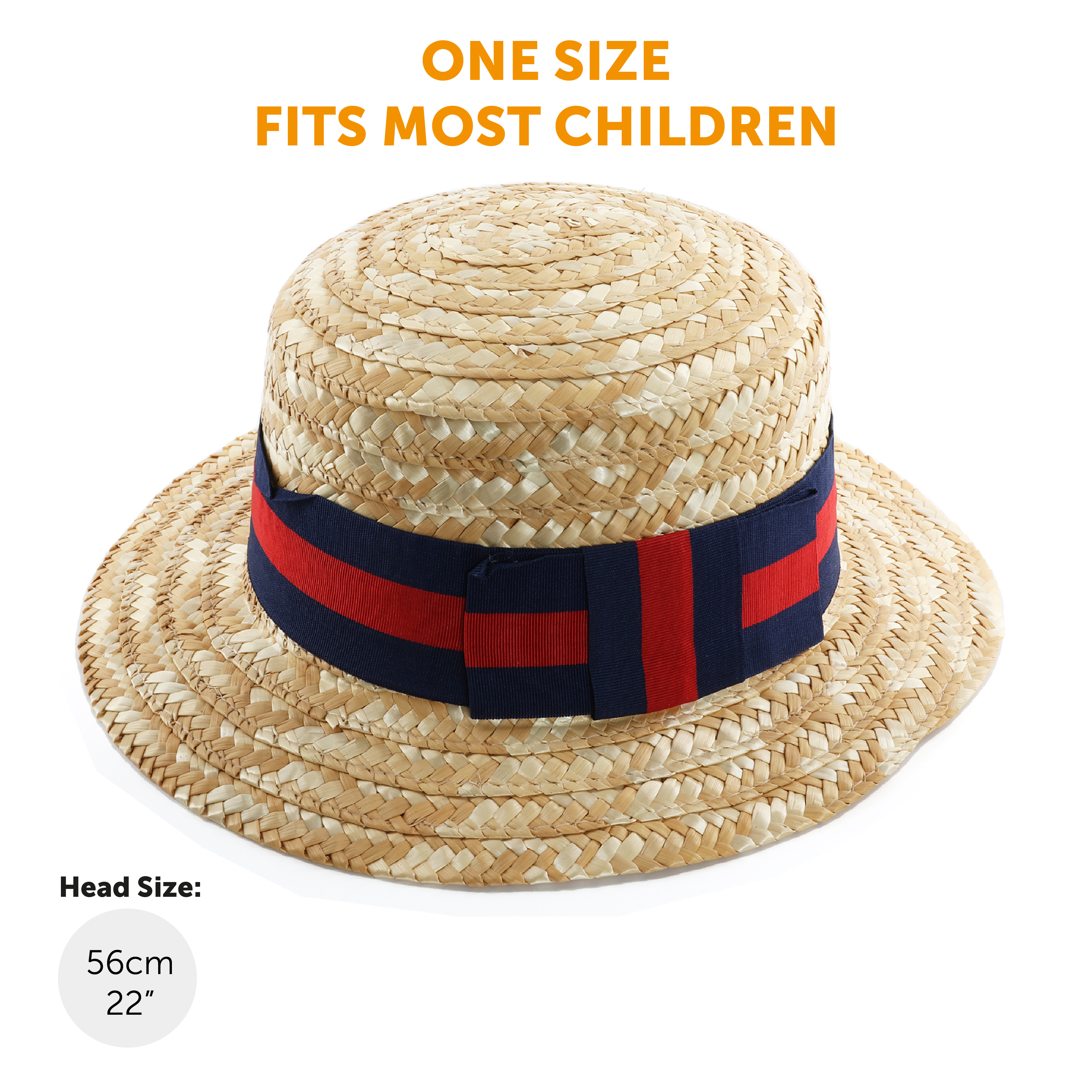 ONE SIZE FITS MOST: This Straw Boater Hat is designed to fit most Children comfortably with a suitable head size of 56cm (22"), a quality accessory to add to your Costume!
