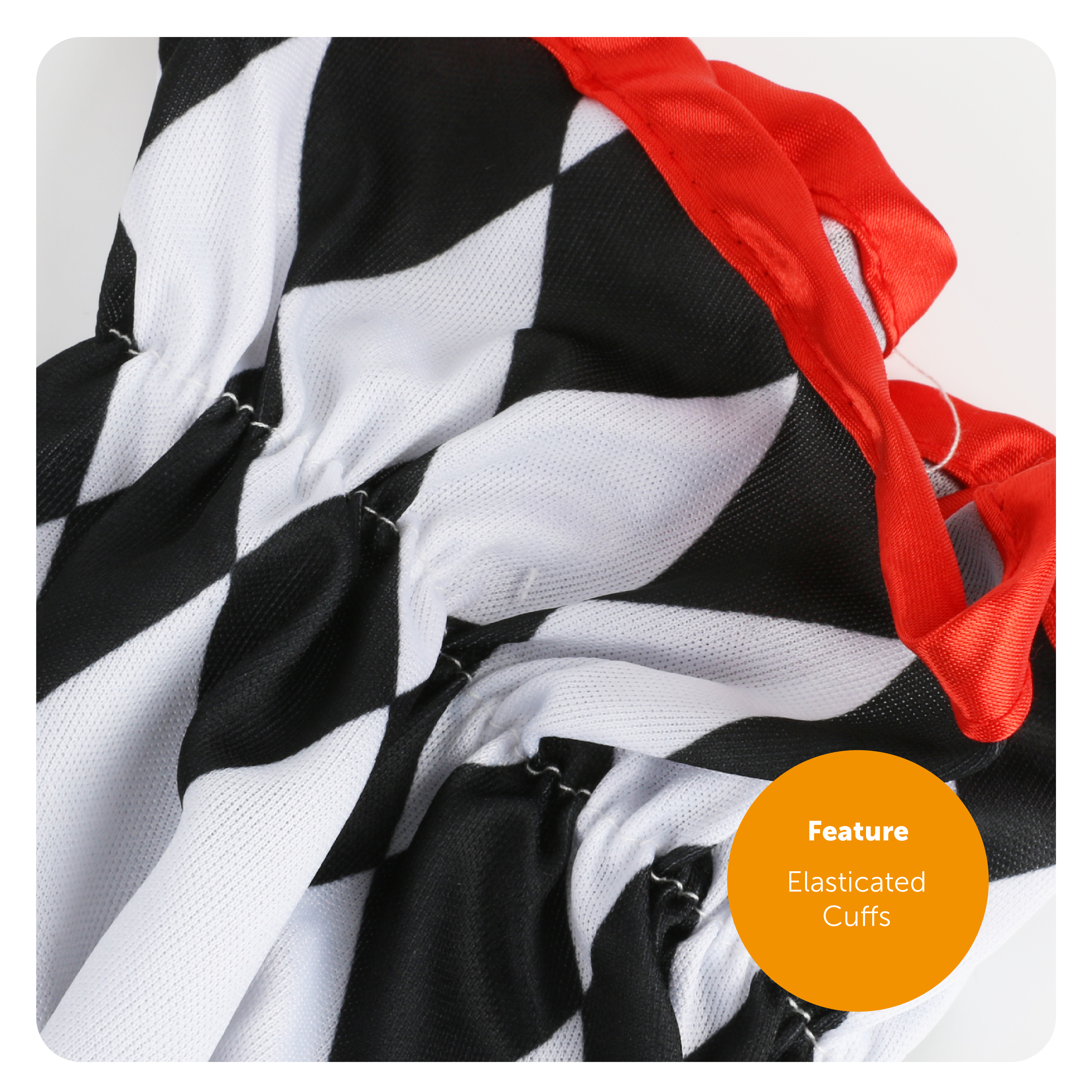 COSTUME DETAILS: Your Child's Killer Clown Halloween Costume contains a Bloodstained Black and White Top & Checked Trousers, a perfect costume to get your children off to being a terror of the night!