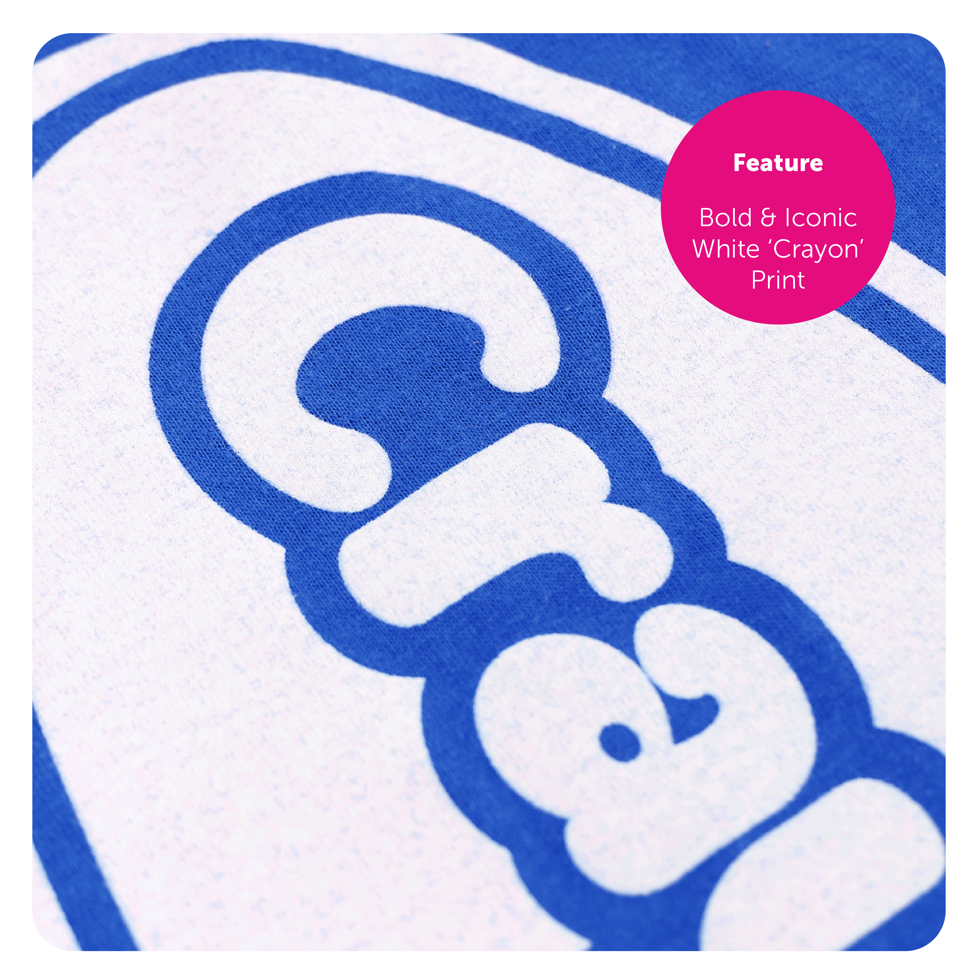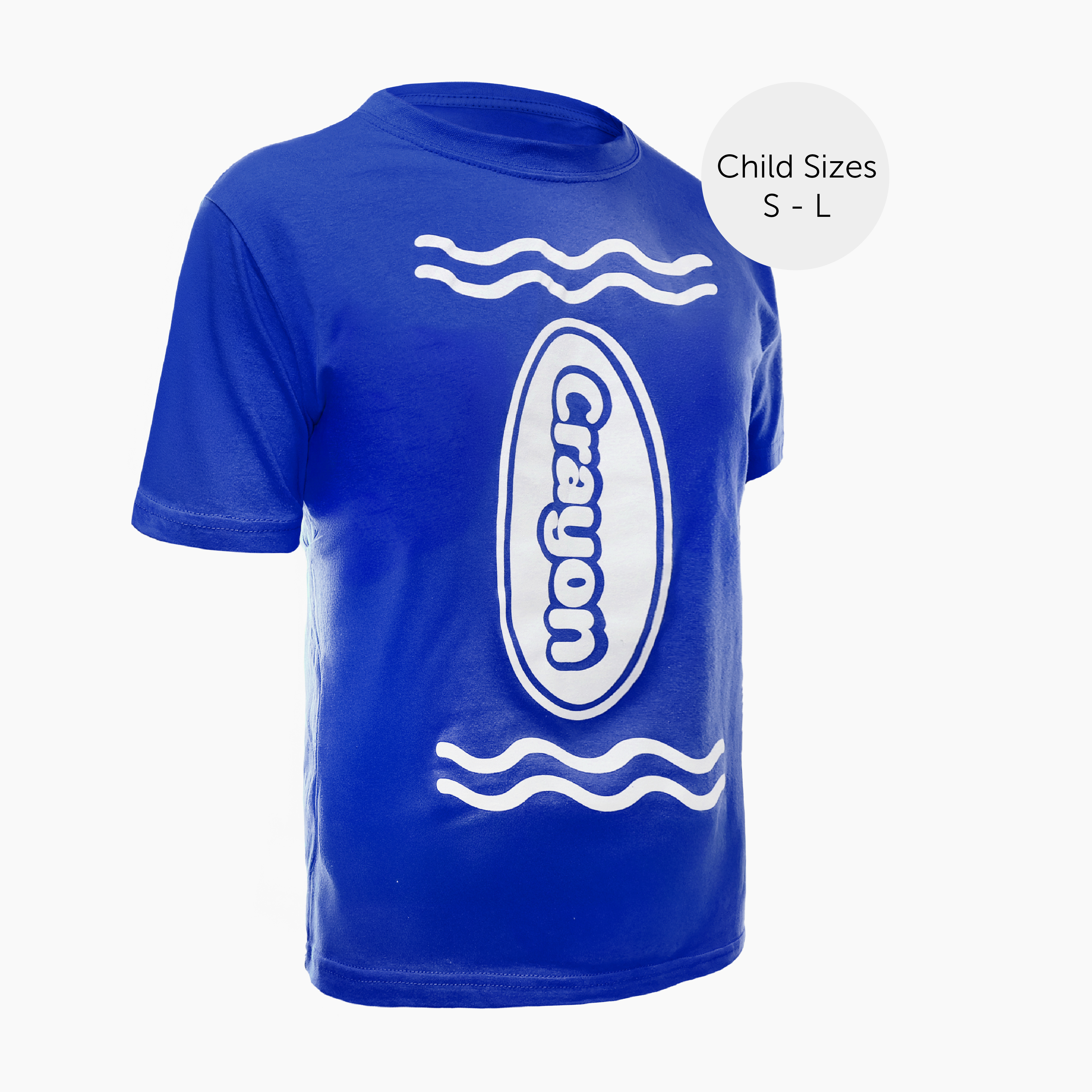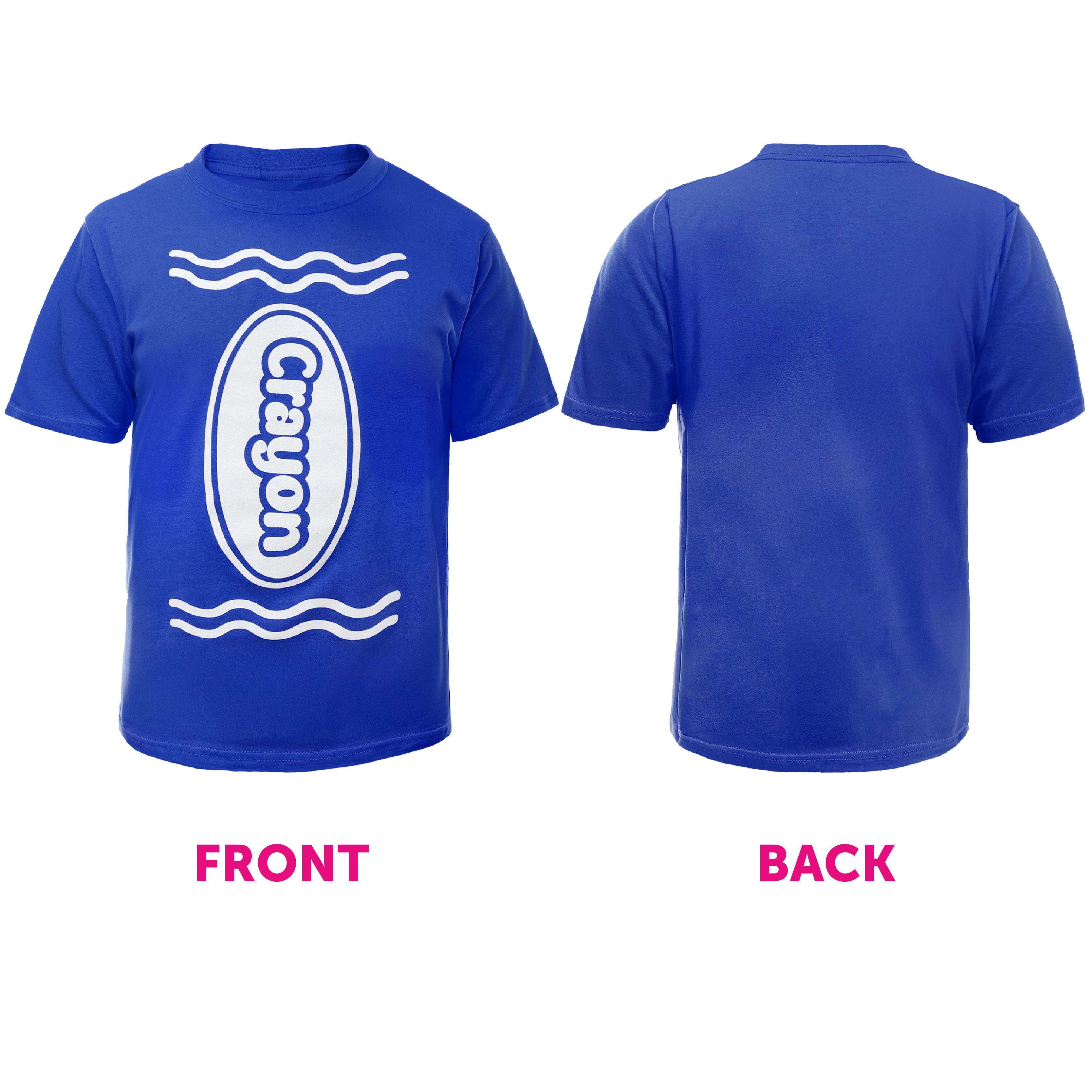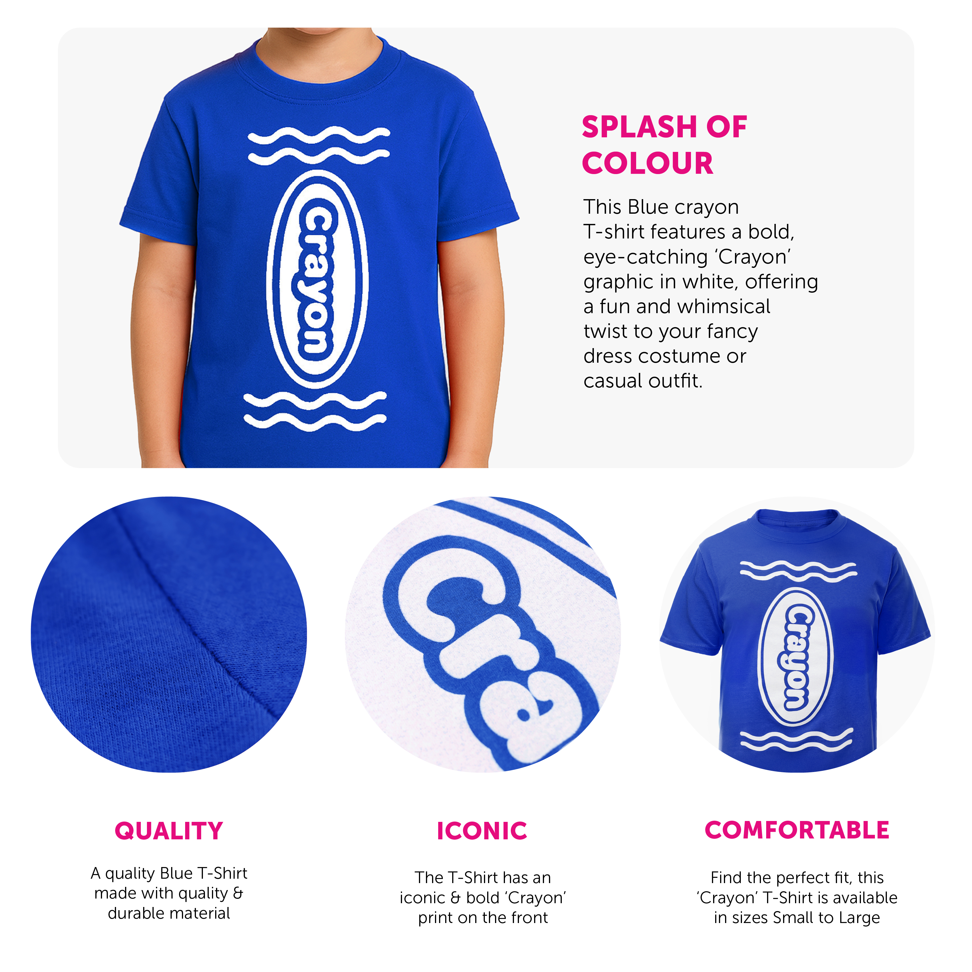 FUN AND CREATIVE DESIGN: This royal blue crayon T-shirt features a bold, eye-catching "Crayon" graphic in white, offering a fun and whimsical twist to your fancy dress costume or casual outfit.