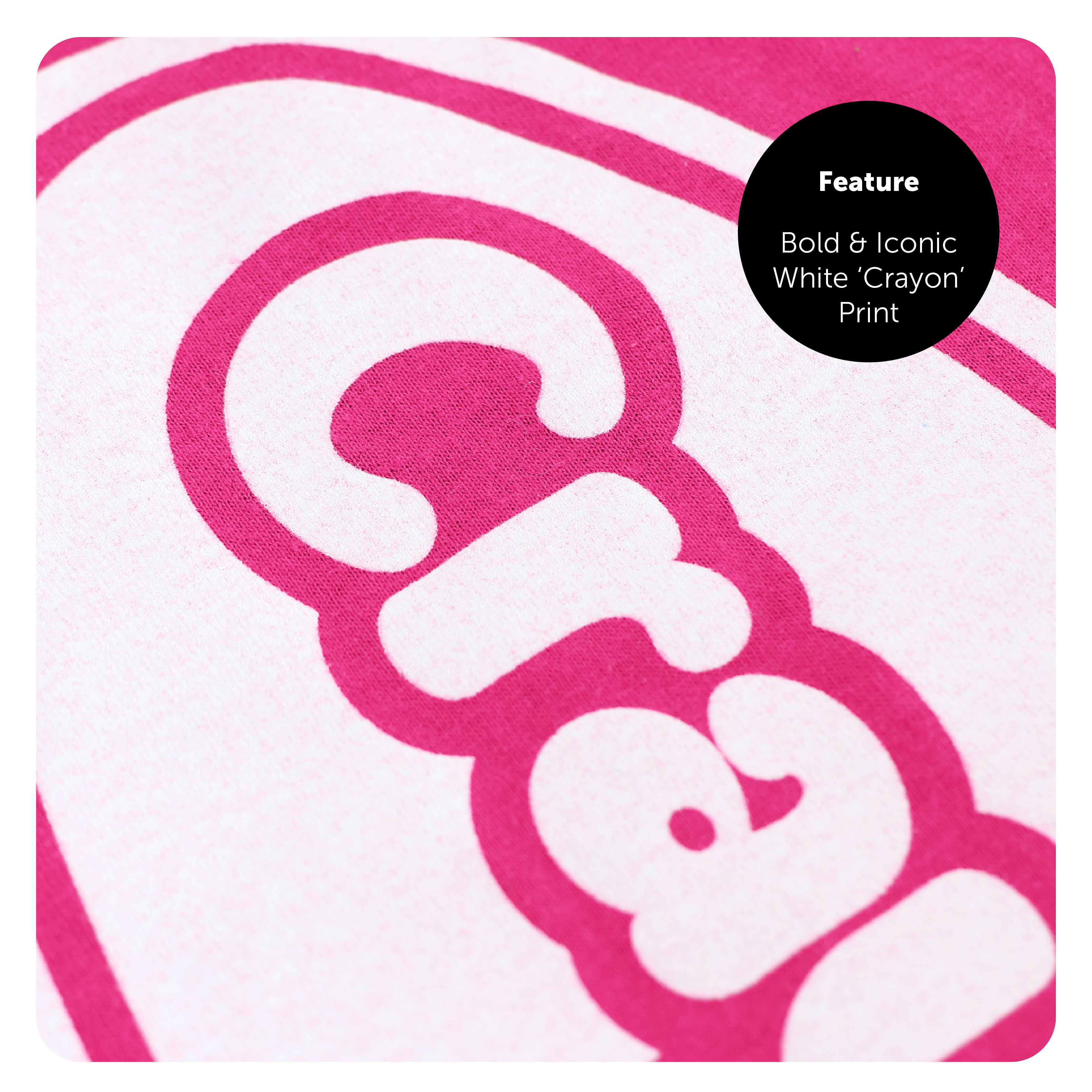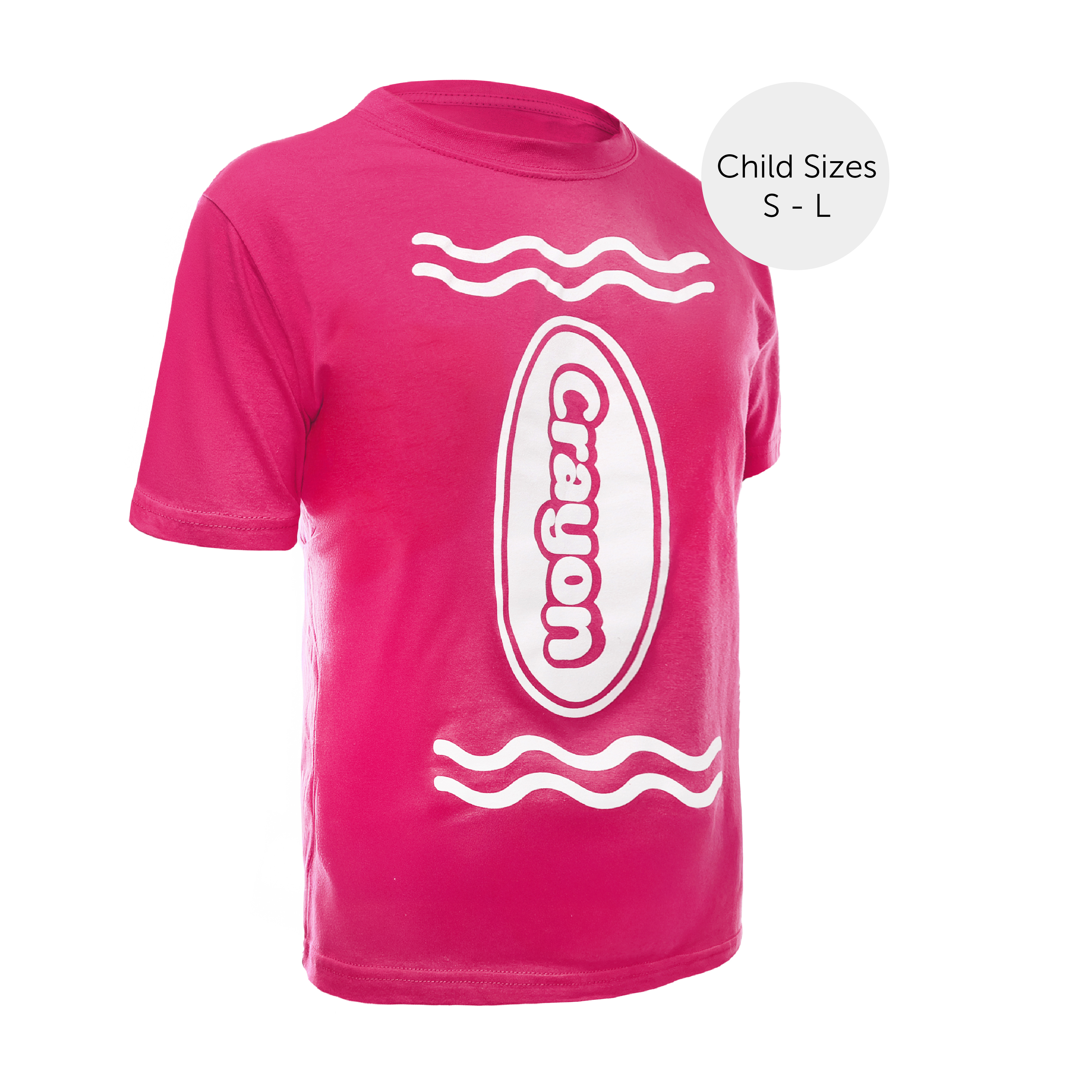 FUN AND CREATIVE DESIGN: This pink crayon T-shirt features a bold, eye-catching "Crayon" graphic in white, offering a fun and whimsical twist to your fancy dress costume or casual outfit.