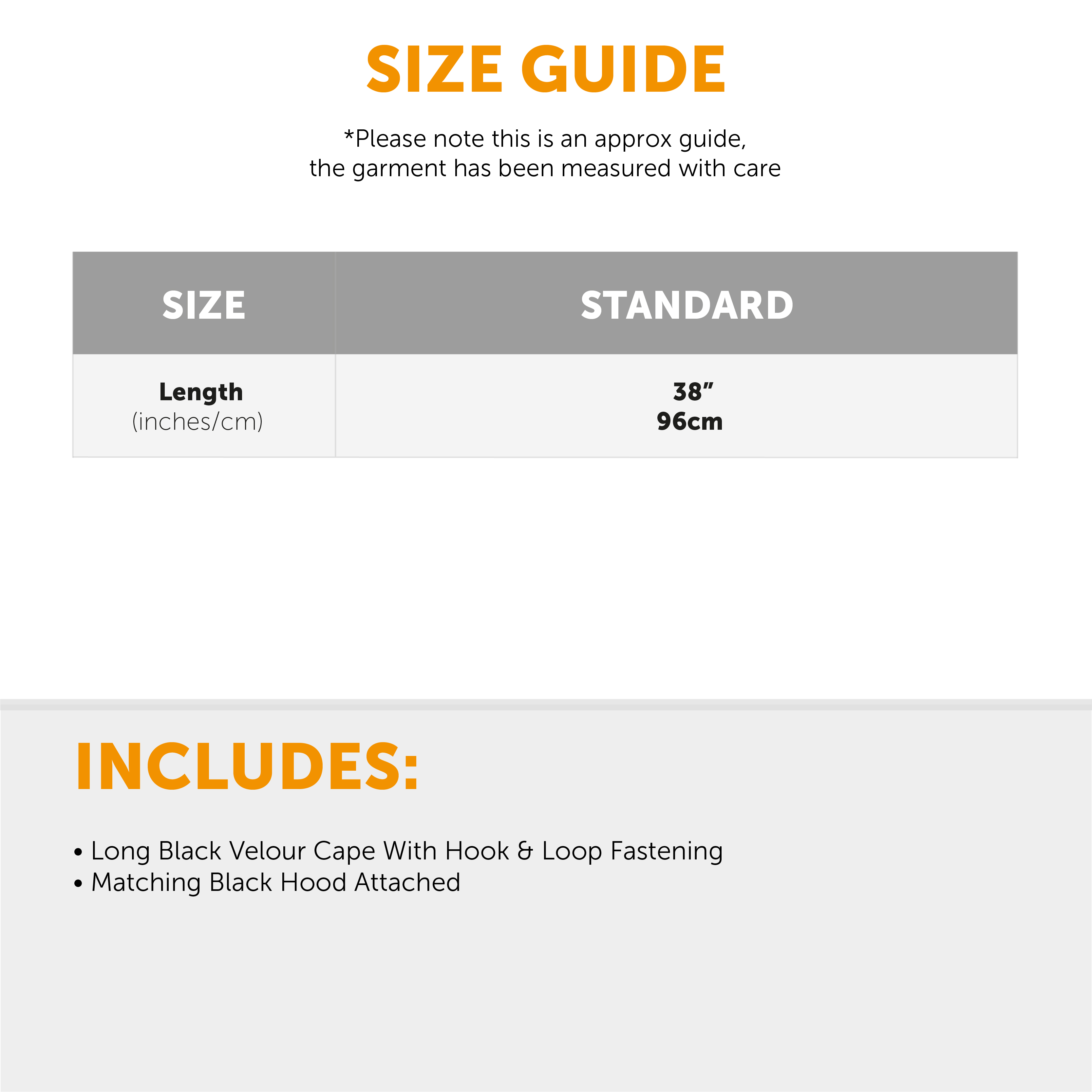 ONE SIZE FITS ALL CHILDS: Regardless of your height or size, our Childs Black Velour Cape is a suitable and perfect size for any child to wear comfortably throughout the night and day for their fancy dress parties and events!