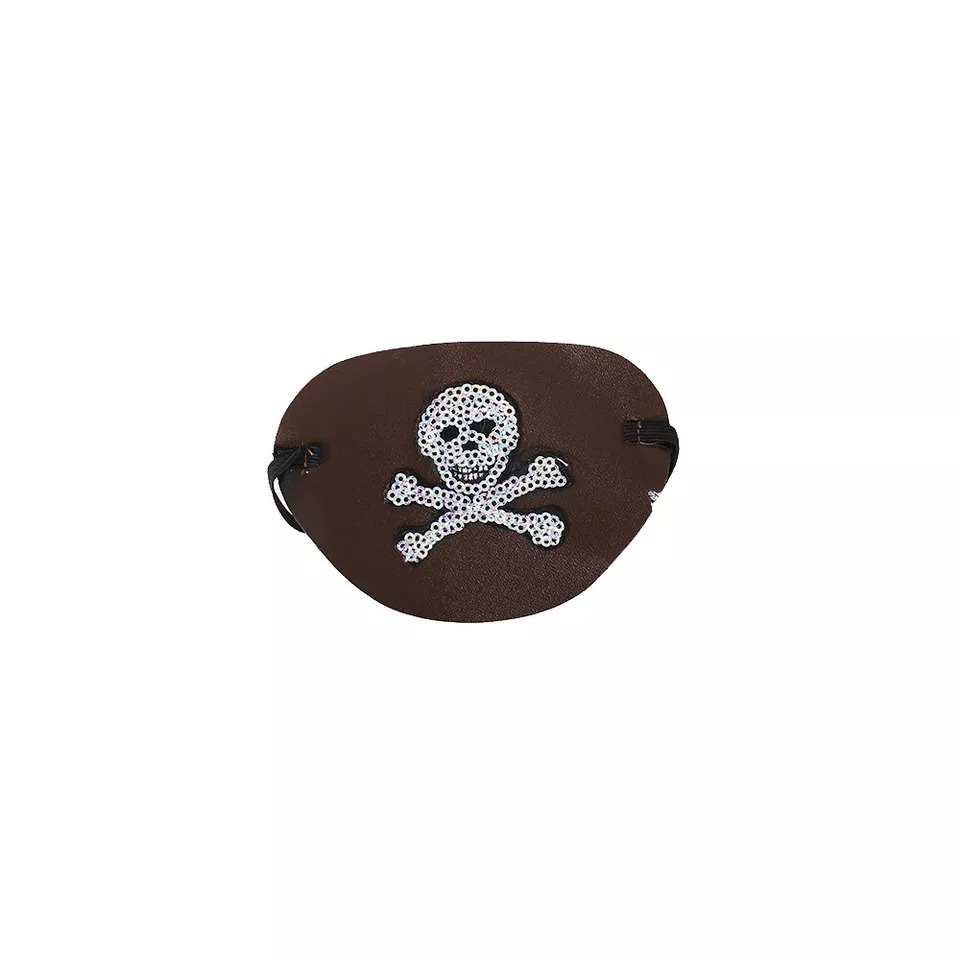Add a touch of swashbuckling style to your pirate costume with this brown sequined eye patch featuring a sequin skull design. Perfect for completing your pirate look, this accessory will make you stand out on your next themed party or costume event.