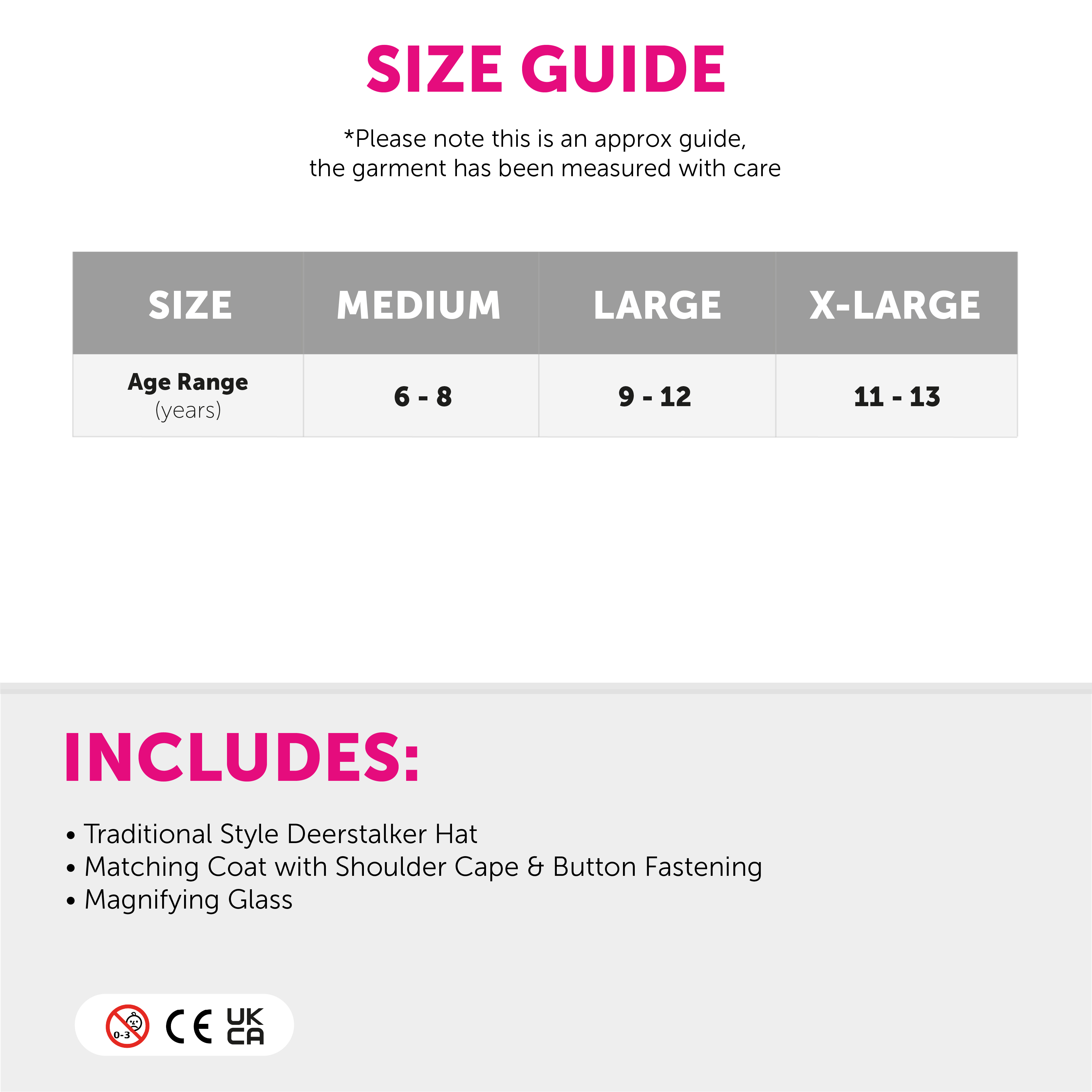 AVAILABLE IN MULTIPLE SIZES: Our Child's Victorian Detective Costume is available in a few Child sizes, Medium to X-Large: Medium 6 - 8 years | Large 9 - 12 years | X-Large 11 - 13 years