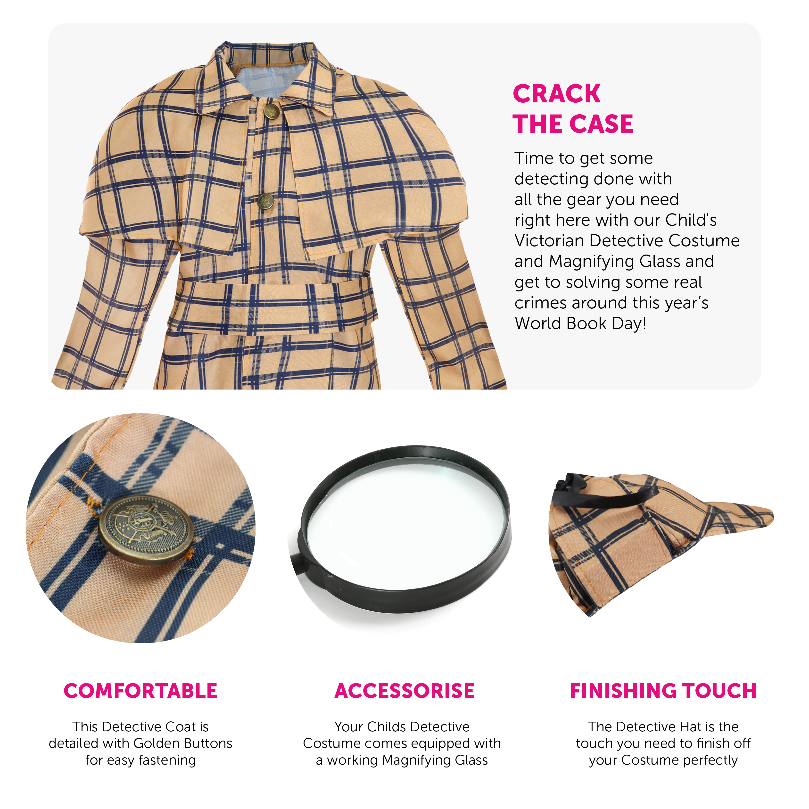 CHILD'S VICTORIAN DETECTIVE COSTUME & MAGNIFYING GLASS: Time to get some detecting done with all the gear you need right here with our Child's Victorian Detective Costume and Magnifying Glass and get to solving some real crimes around this year’s World Book Day!