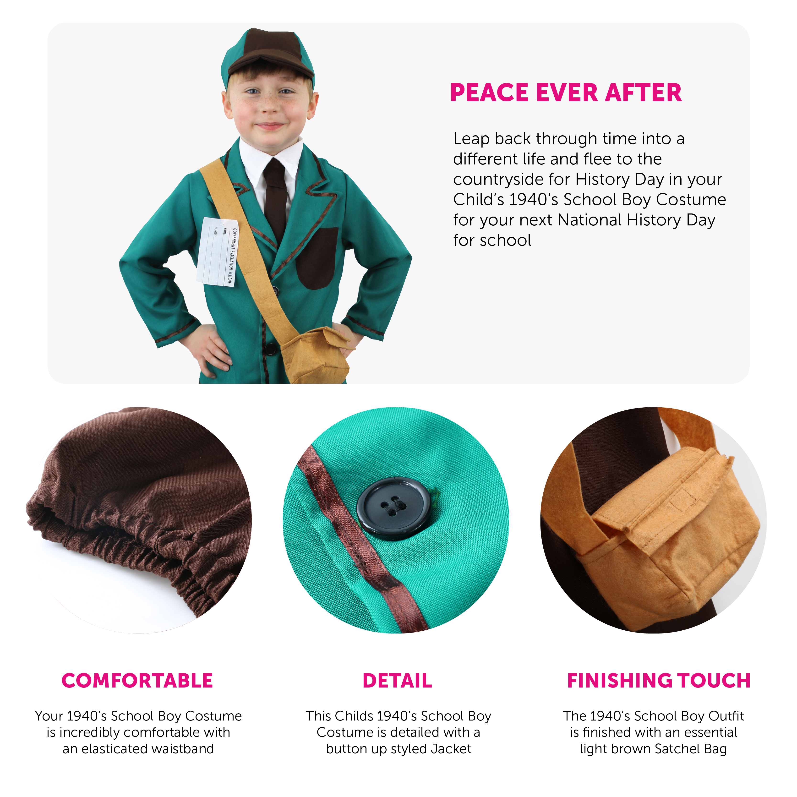 PERFECT FOR NATIONAL HISTORY DAY AND SCHOOL EVENTS: Whether you’re dressing up for a National History Day event in school or any other fancy dress or School event, pick up your Child’s 1940's School Boy Costume to stay ready!