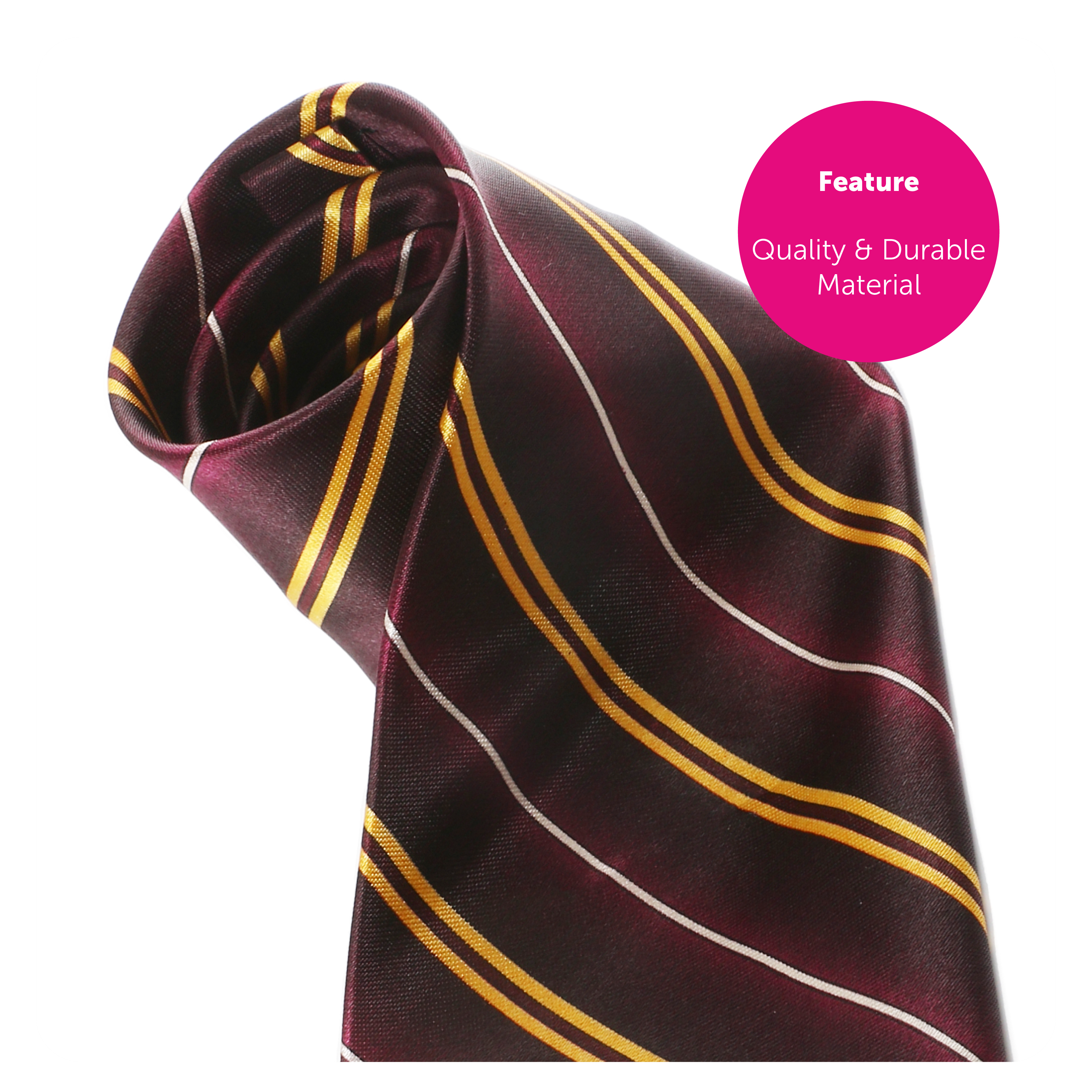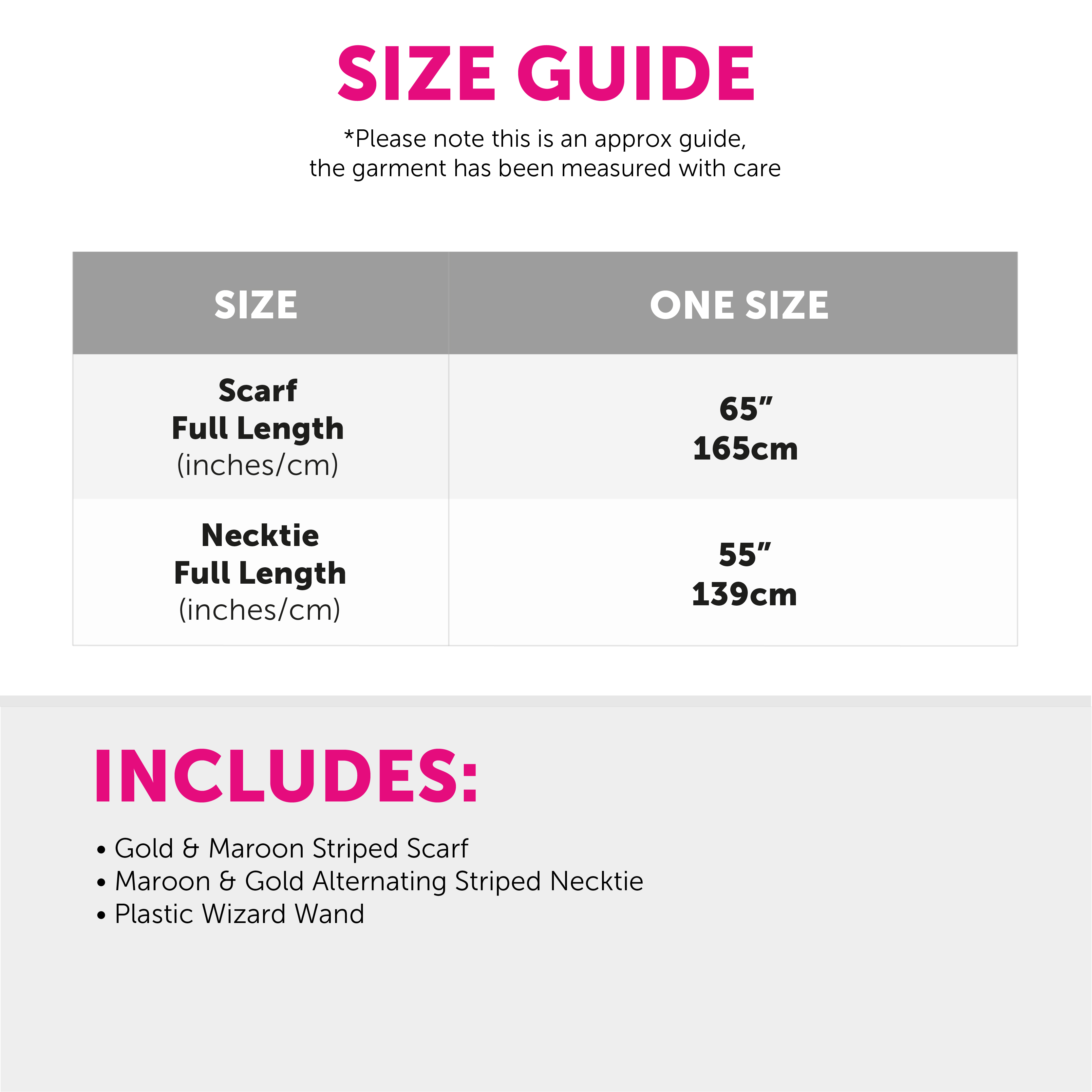 SET INCLUDES: Your Wizard Accessory Set includes a Maroon and Gold Striped Scarf, a Striped Tie, and a Plastic Wizard Wand, great additions to your World Book Day Costume!