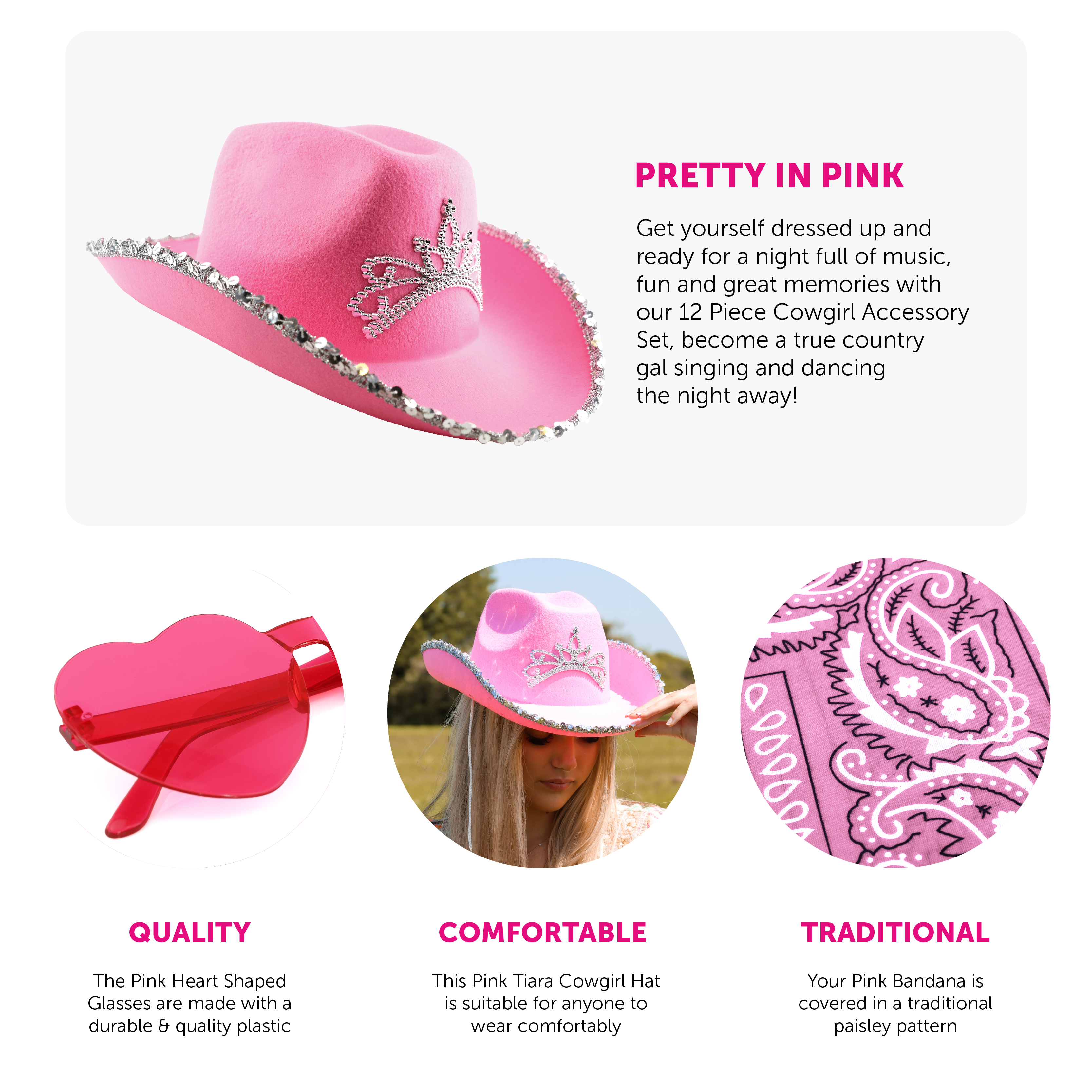 12 Pcs Pink Cowgirl Accessory Set – Perfect for Hen Parties & Fancy Dress!