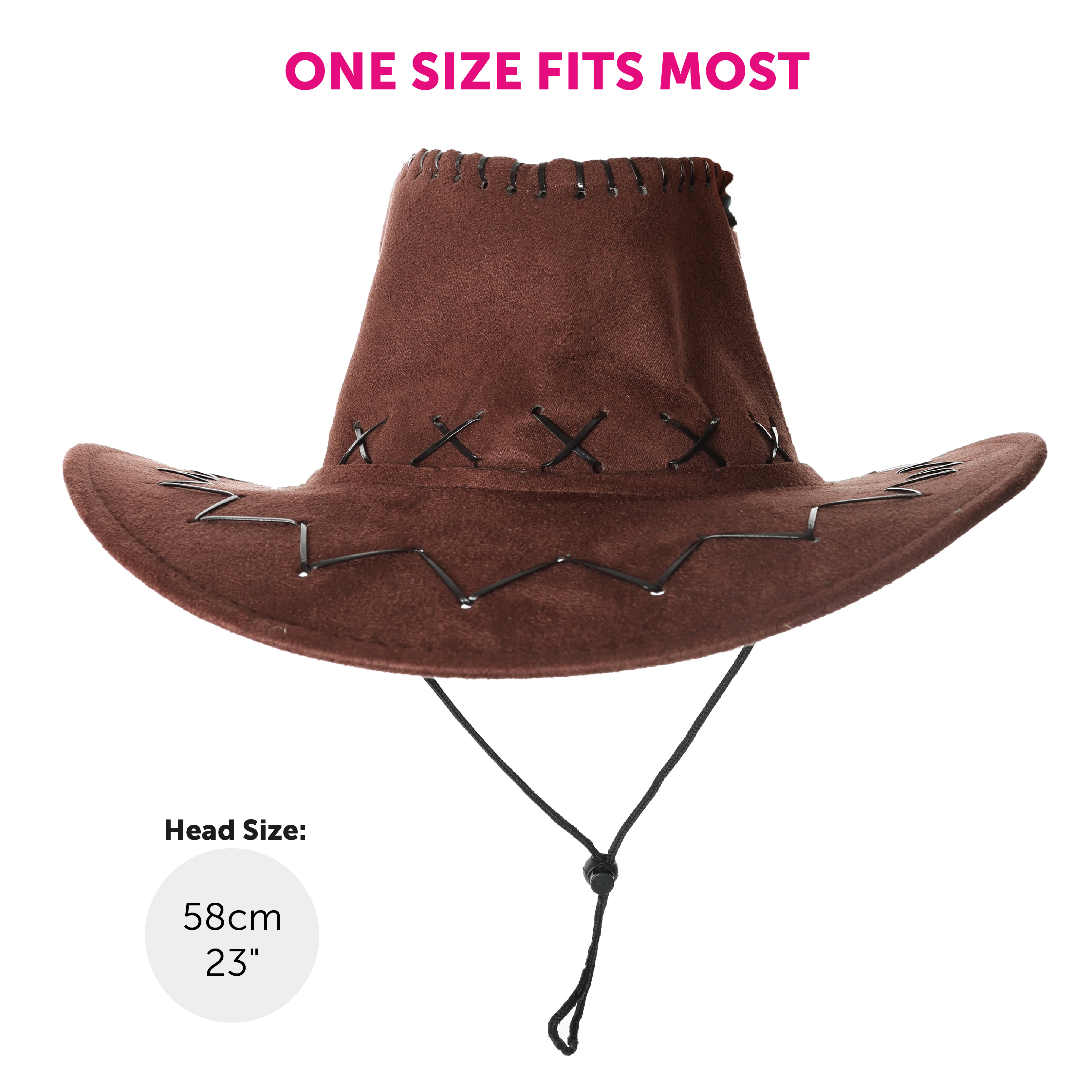 GREAT SIZED HAT: This Brown Faux Suede Cowboy Hat is designed to fit most Adults comfortably with a suitable head size of 58cm (23")
