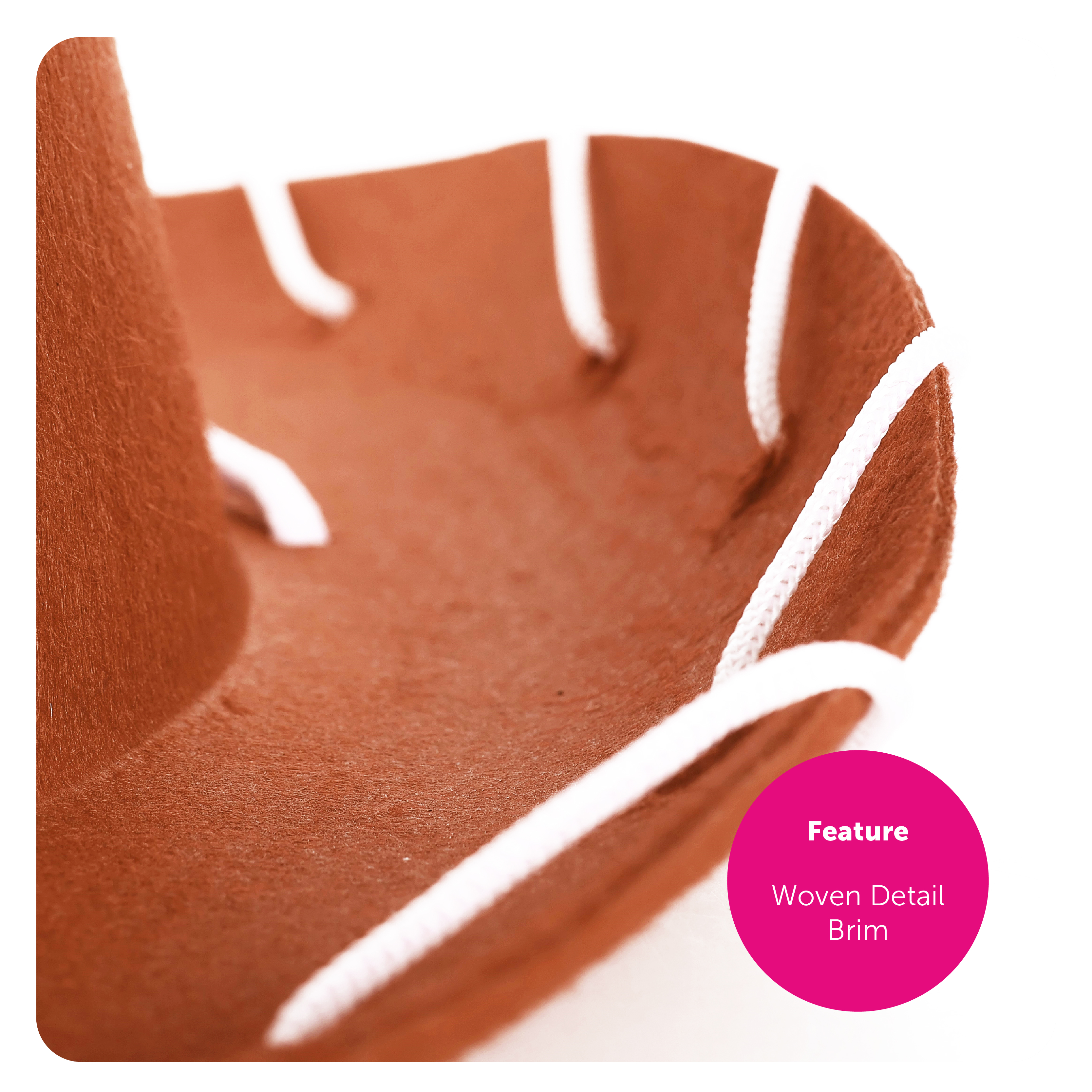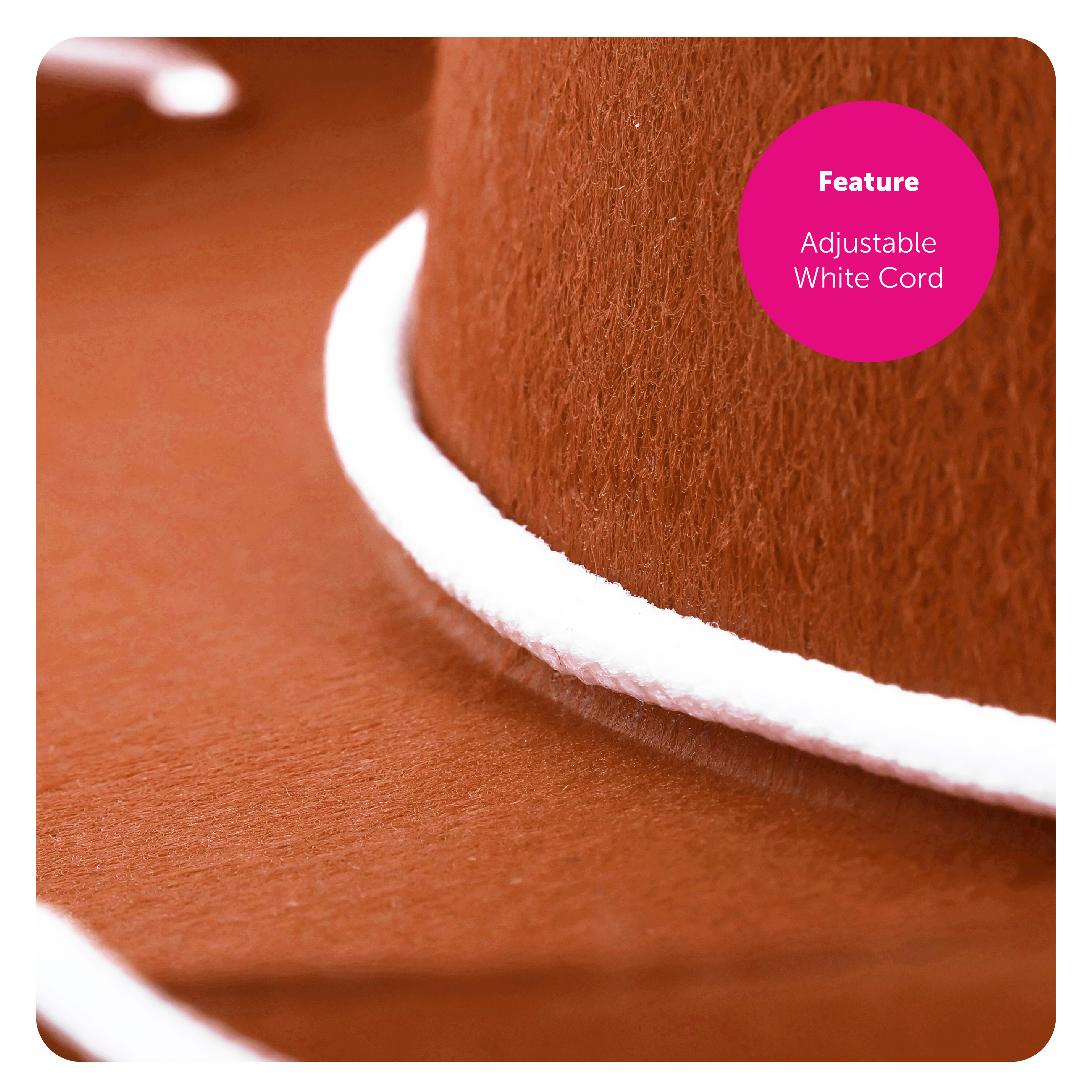 HAT DETAILS: The Child's Cowboy Hat is a sturdy Brown felt Cowboy Hat with thin White Rope woven around the brim and an adjustable White Cord for the perfect fit!