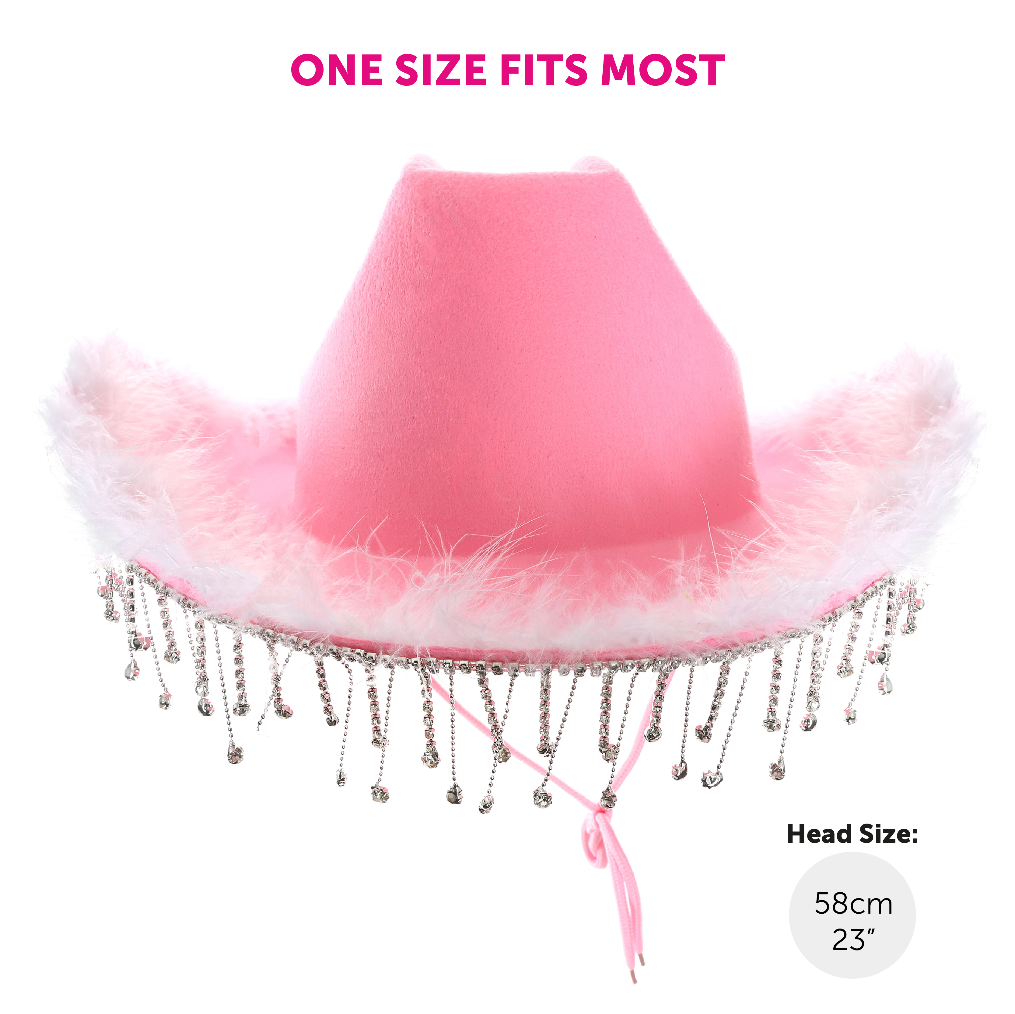 ONE SIZE FITS MOST: The Pink Diamante Cowgirl Hat is the perfect size for most to wear with a suitable head size of 58cm (23"), and an adjustable string to wear comfortably all night long!
