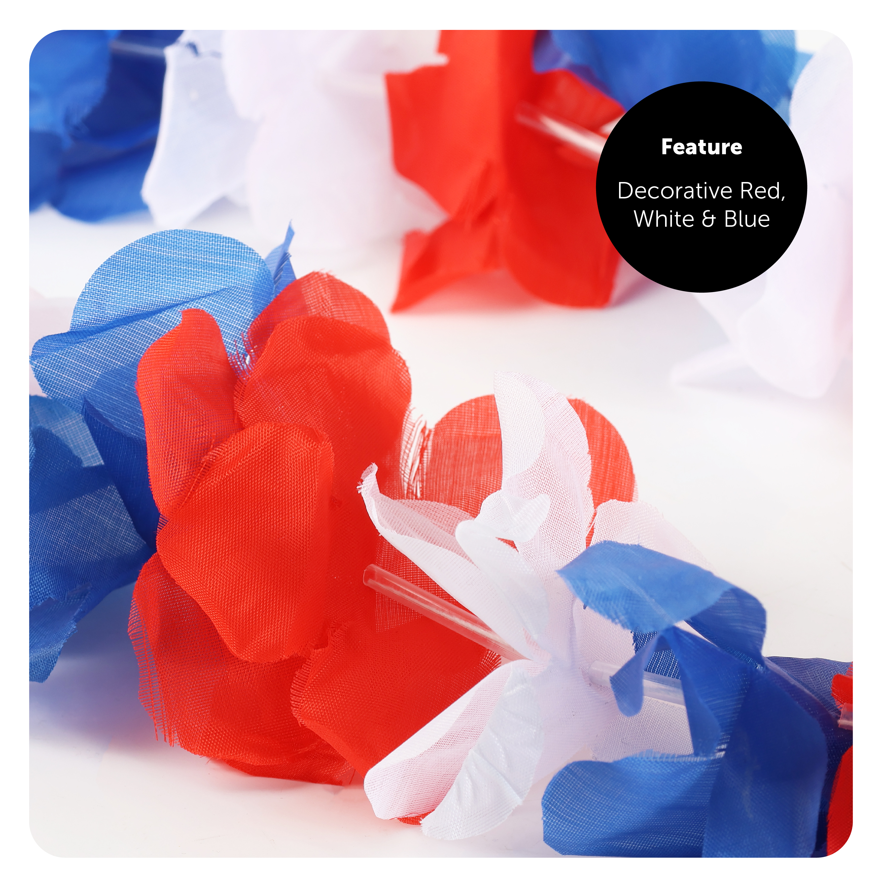 AVAILABLE IN MULTIPLE PACKS: Your Union Jack Lei Flower Necklace is available in multiple packs, from Packs of 3, Packs of 6, Packs of 12, Packs of 24 and Packs of 48, for you to share with your family and friends!