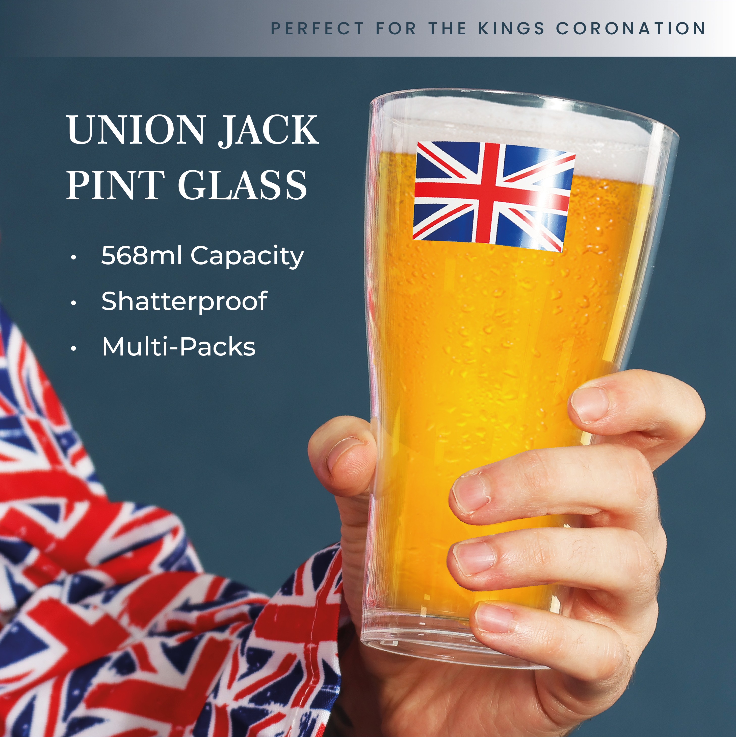 - UNION JACK PLASTIC PINT GLASSES: Have a well deserved drink at any event and celebration this year, with these environmentally friendly, durable Union Jack Plastic Pint Glasses, the perfect addition to any party!