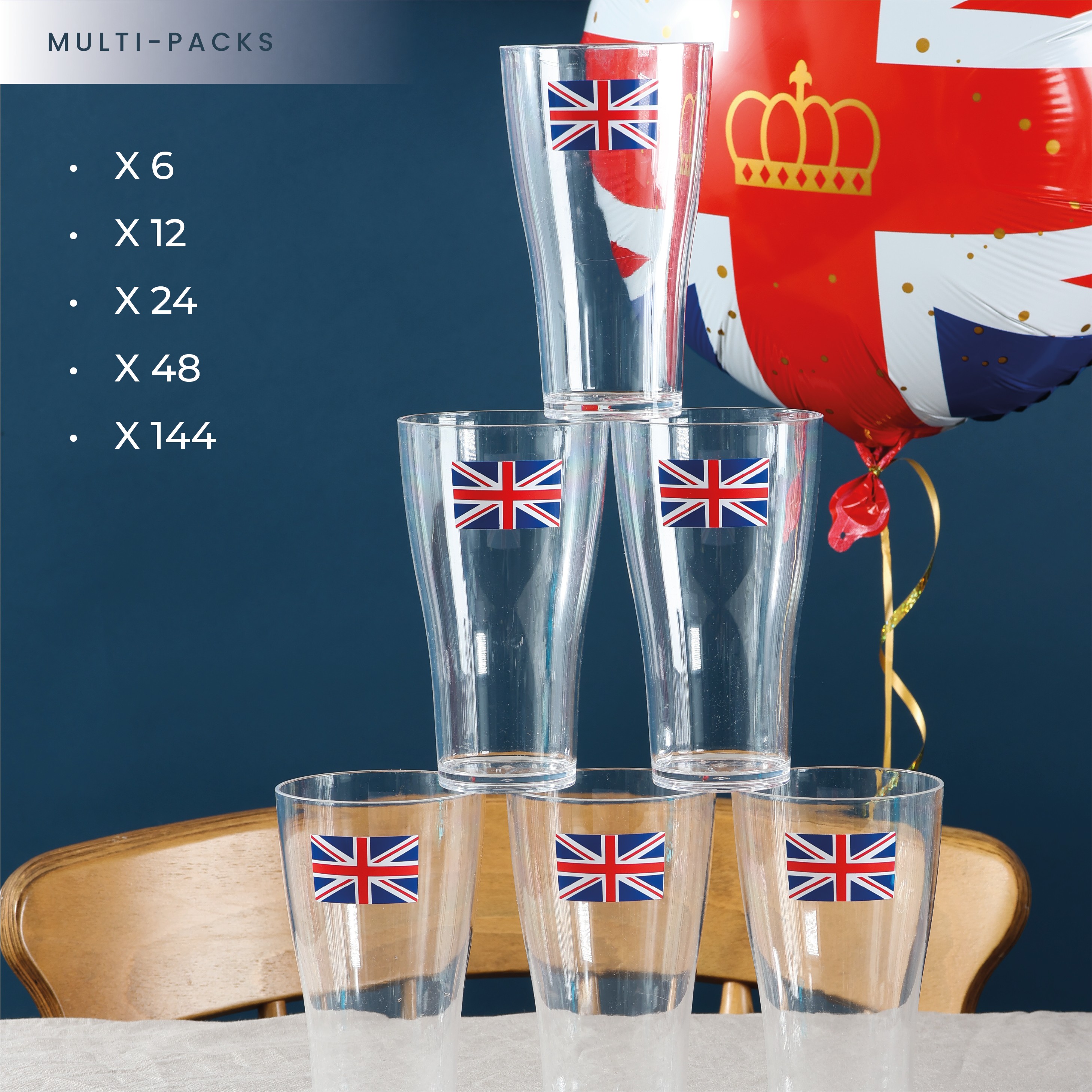AVAILABLE IN MULTIPLE PACK SIZES: These Union Jack Plastic Pint Glasses are available to buy in Packs of 12, or if you happen to be catering for more, there are also Packs of 24 and Packs of 144, for you to use among groups of family and friends!