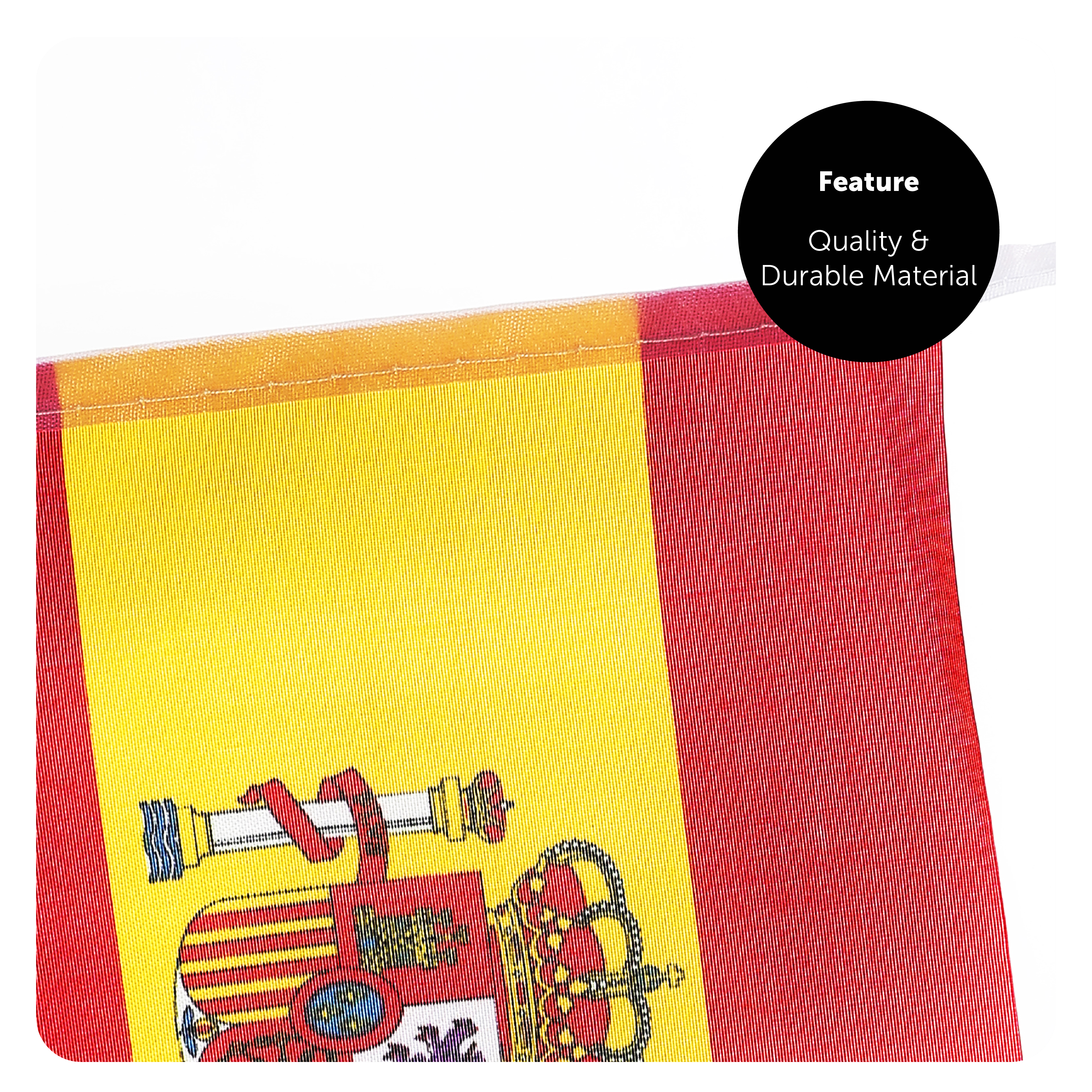 HANG UP ANYWHERE: With the Eyelet holes on the flag, you’re free to hang your 5ft x 3ft Spanish Flag anywhere! The reusable Spanish Bunting is attached to a durable strip, which is perfect for outdoor use due to its all-weather, water resistant and easy to clean qualities!