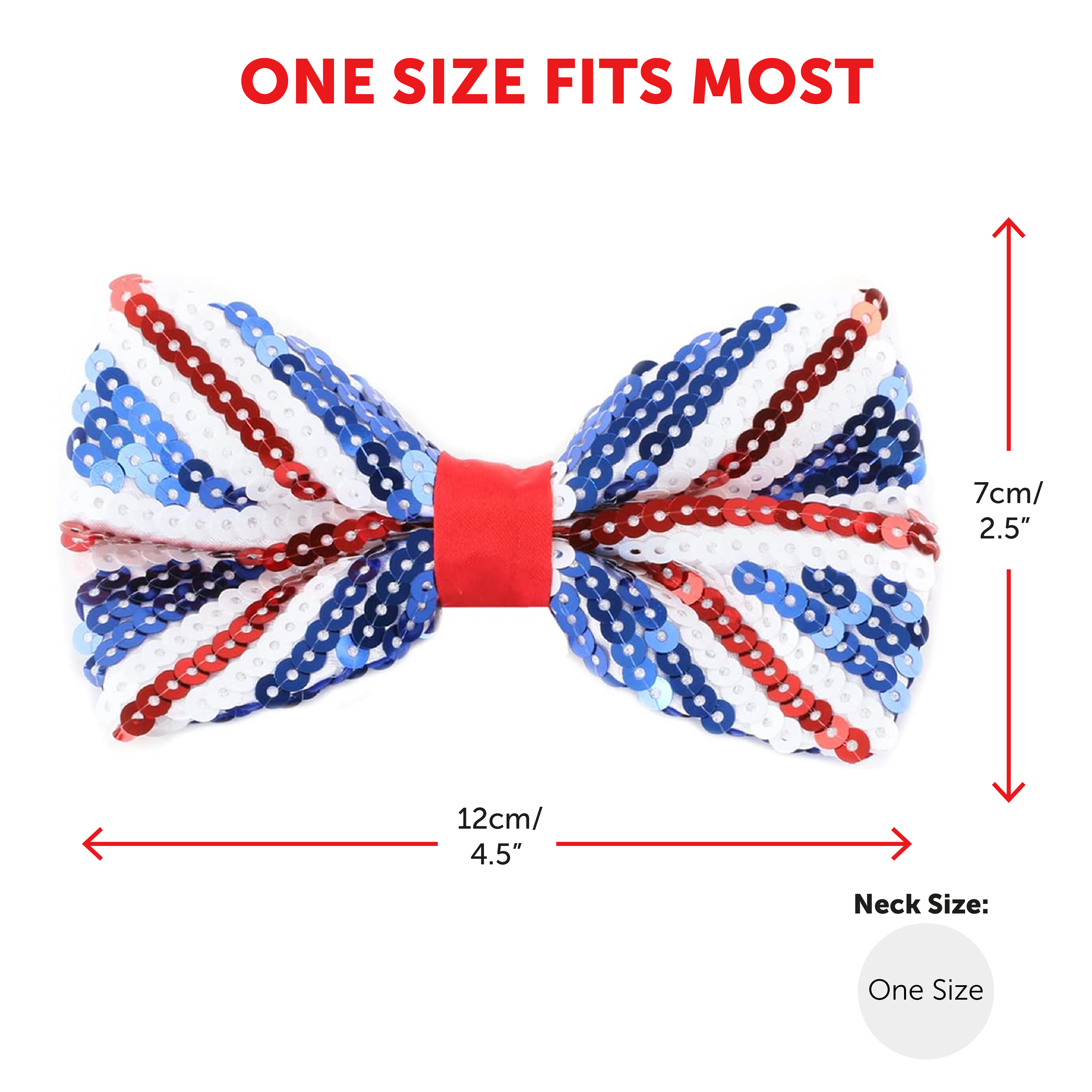 AVAILABLE IN MULTIPLE PACKS: The Union Jack Bowler Hat and Sequin Bow Tie Set is available in multiple sized packs, from Single Packs to Packs of 3, Packs of 6, Packs of 12, and Packs of 24, for you to share amongst your friends and family!