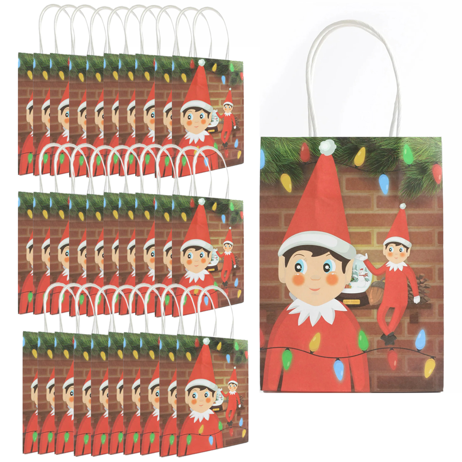 Pack of 30 Elf Christmas Paper Bag with Handles   £10.99