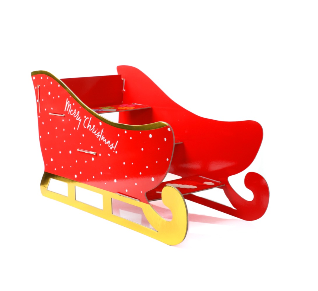 Features a red & white Santa sleigh with a snowy detail design. The cardboard slot system ensures stability and makes assembly and disassembly fast and simple.