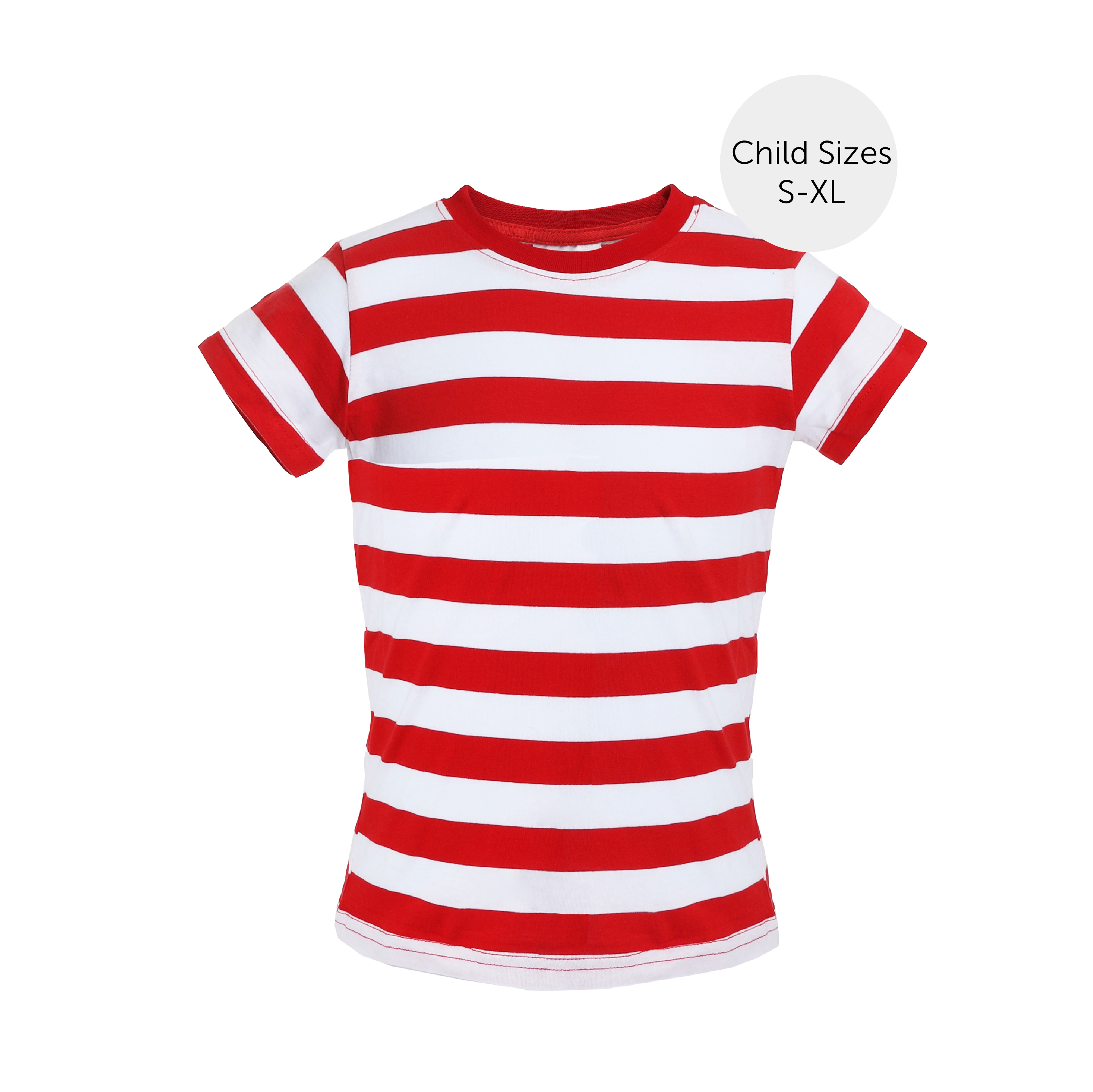 CHILD’S RED & WHITE STRIPED COTTON T SHIRT: Stand out as you attend any fancy dress event in our Child's Red and White Striped T Shirt, simply add some accessories to your outfit and you'll become an iconic part of World Book Day and other events!