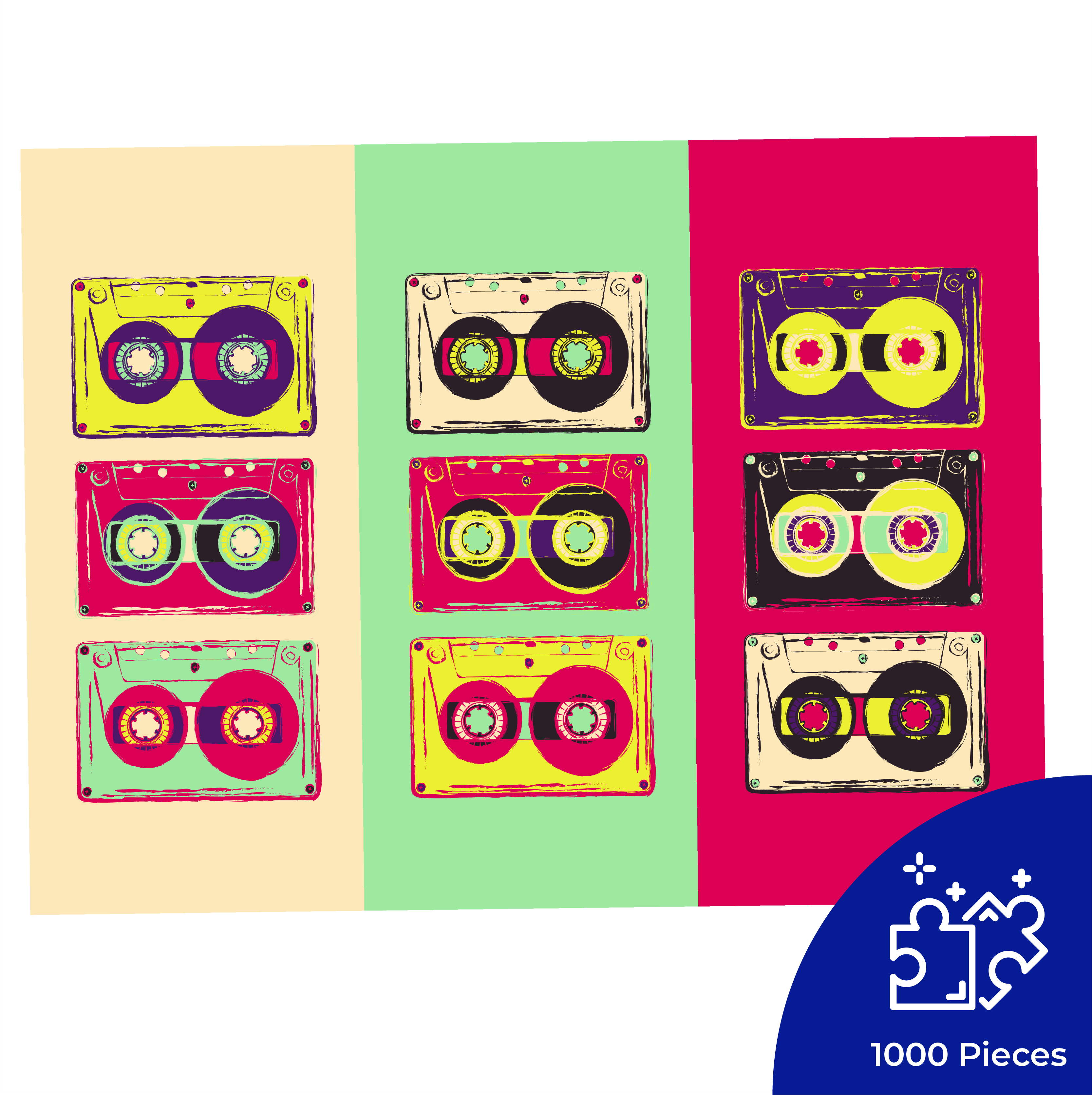 QUALITY DESIGN: This 1000 Piece Puzzle is a quality designed Jigsaw Puzzle with vibrant colours, displaying an image of 9 Cassette Tapes!