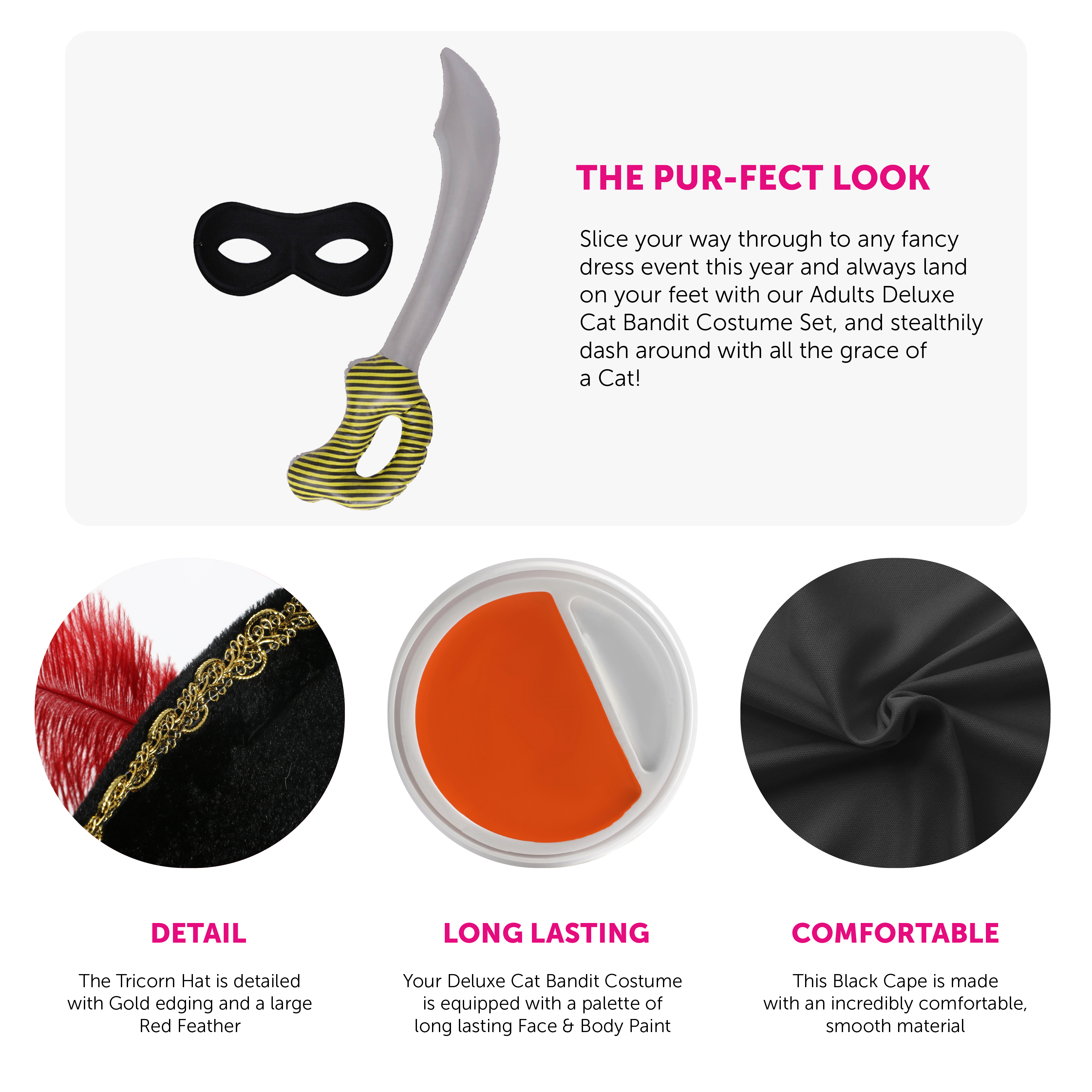 If you’re looking for an iconic Book Character Costume for any event or party, then this Adults Deluxe Cat Bandit Costume Set is certainly the way to go for any occasion you need it for!