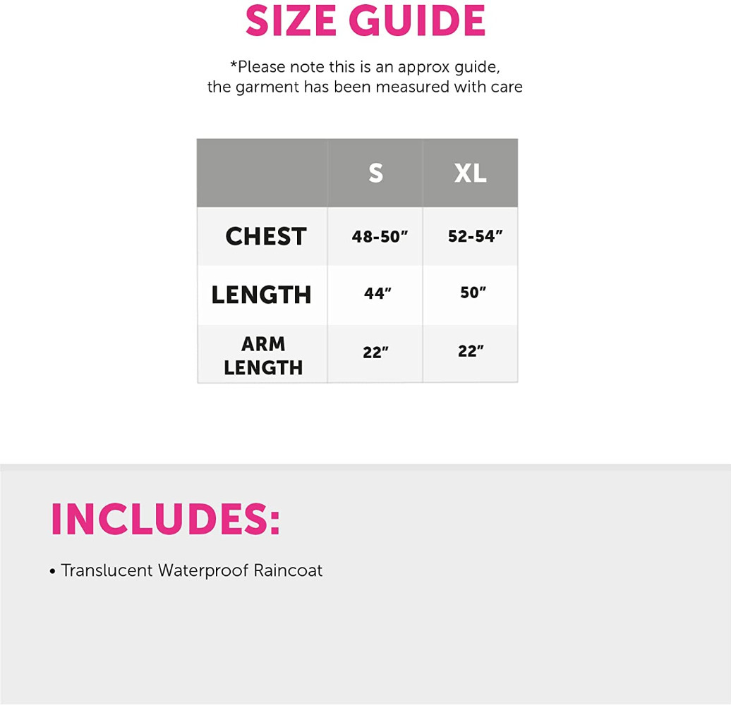 AVAILABLE IN MULTIPLE SIZES: These Adult Raincoats are available in multiple sizes from Standard to X-Large: Standard - Chest - 126cm - 48-50 Inch, Length - 112cm - 44 Inch, Arm Length - 56cm - 22 Inch