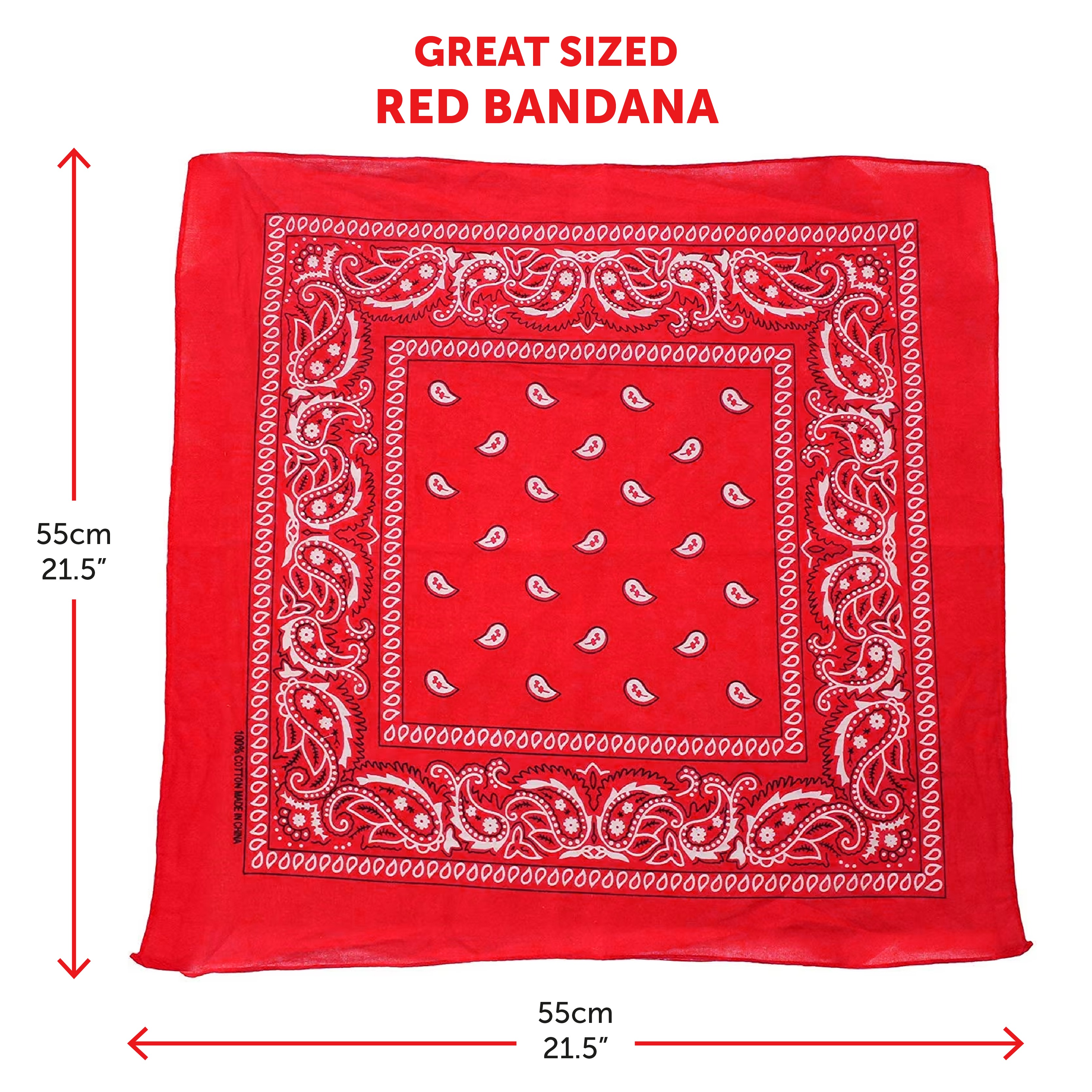 RED PAISLEY BANDANA DETAILS: