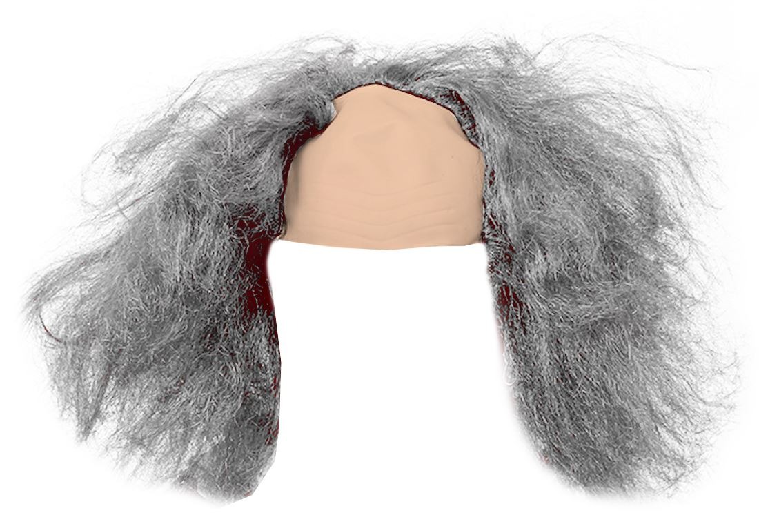 - Grey hair attached to a skin-tone head cap