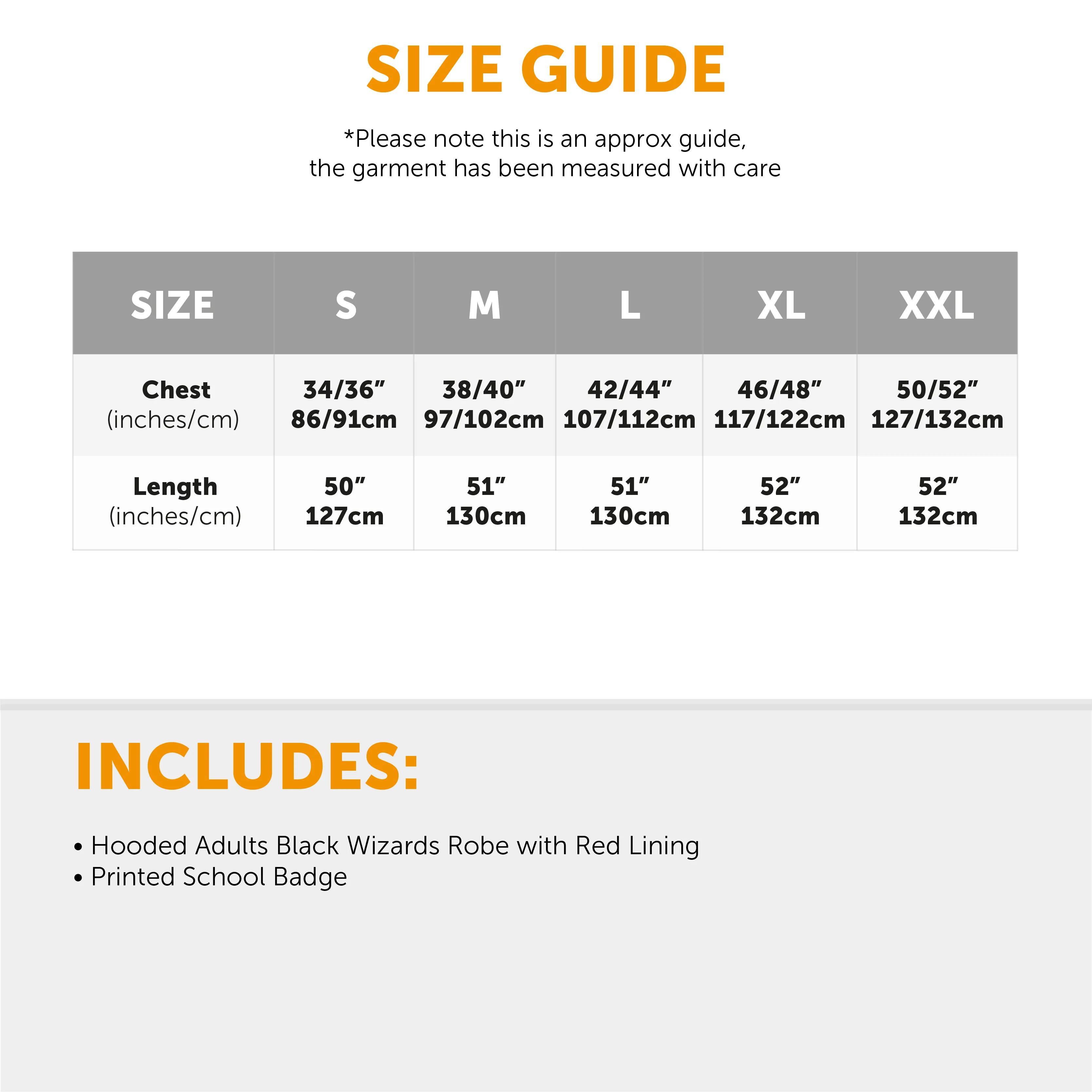 XX-Large: Chest 50–52" (127–132cm) | Length 52" (132cm)