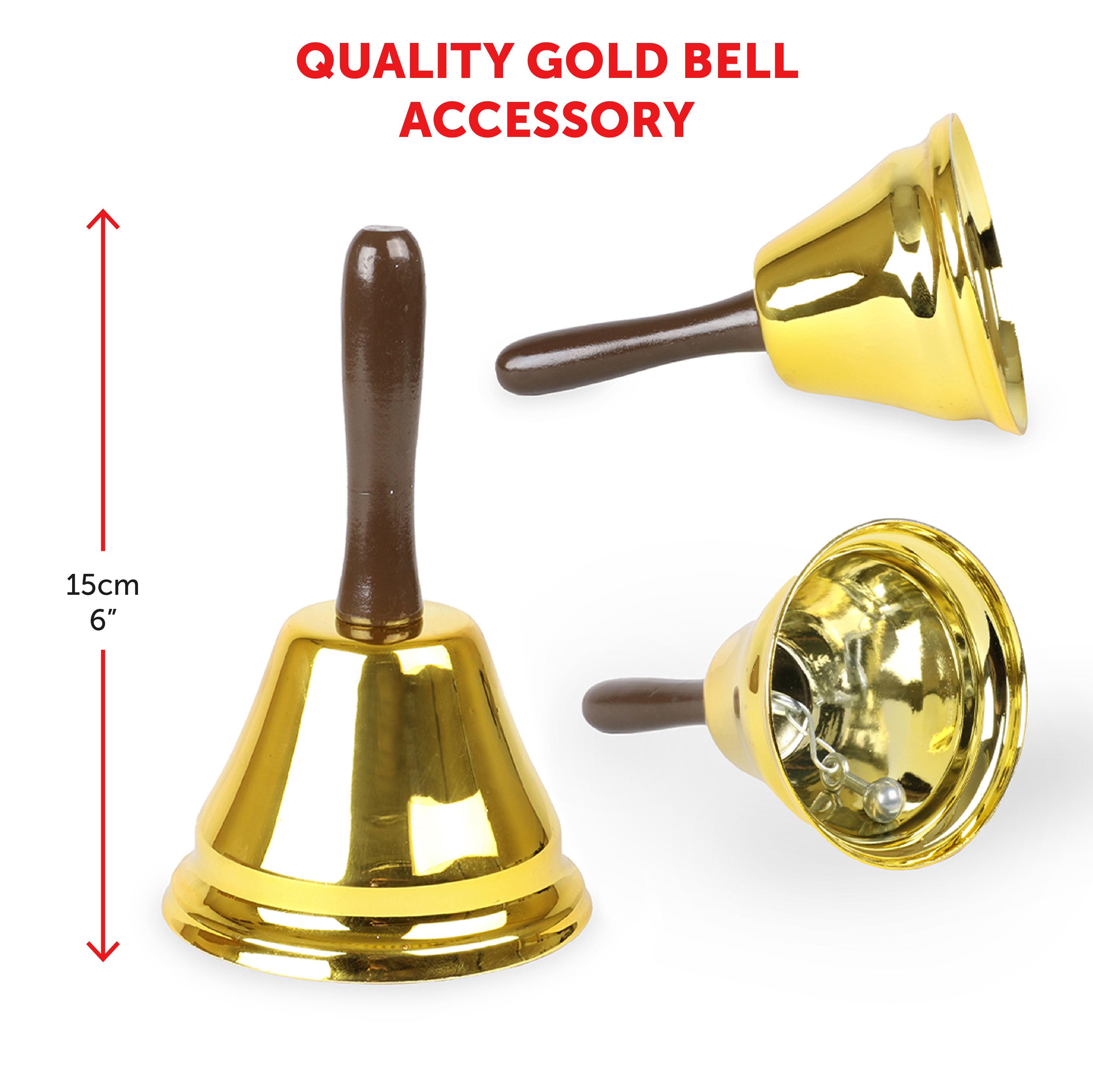 GREAT SIZE PROP: Your Gold Bell accessory is a great size to carry around with you to any fancy dress event, with a full length of 15cm (6") from the tip of the handle, to the base!