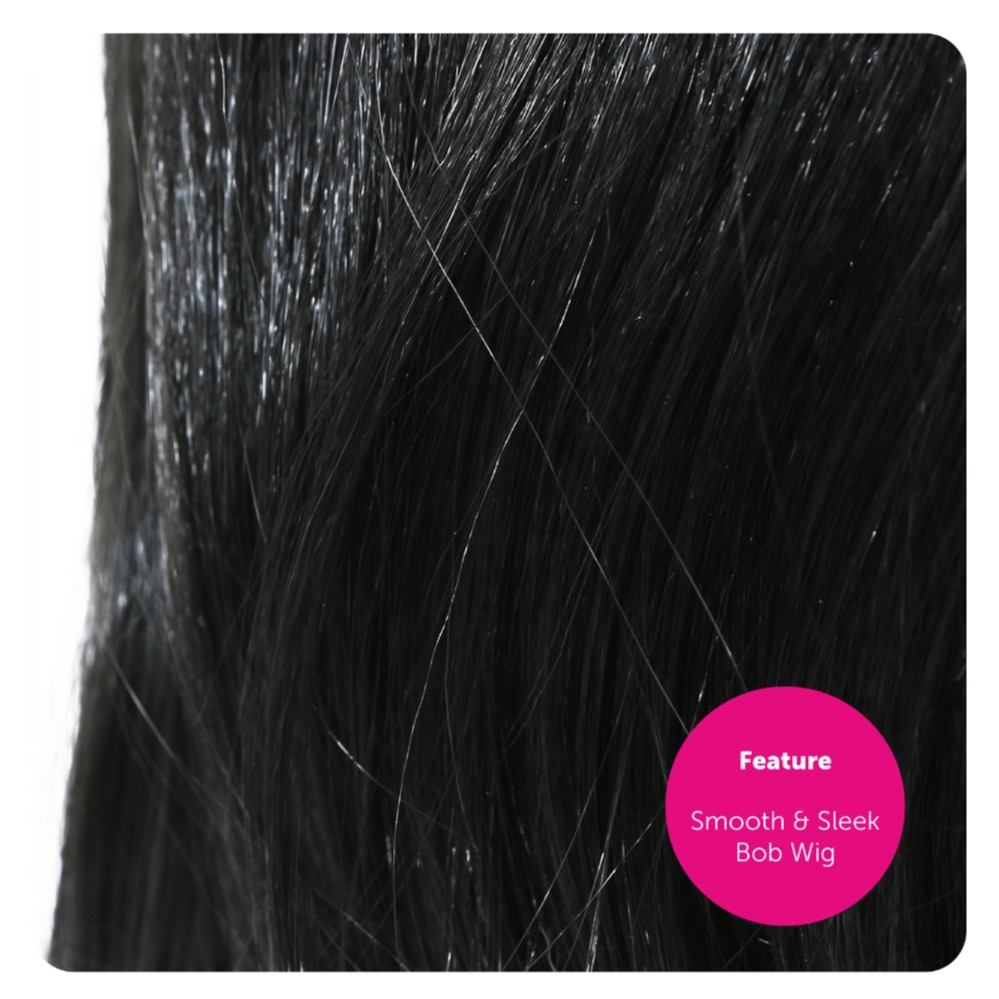 A long black cloak with a luxurious white fur collar, a black bob wig, black studded fingerless gloves, black eye make-up, and a holographic light up lantern — the ultimate finishing touch for a dramatic and atmospheric look.