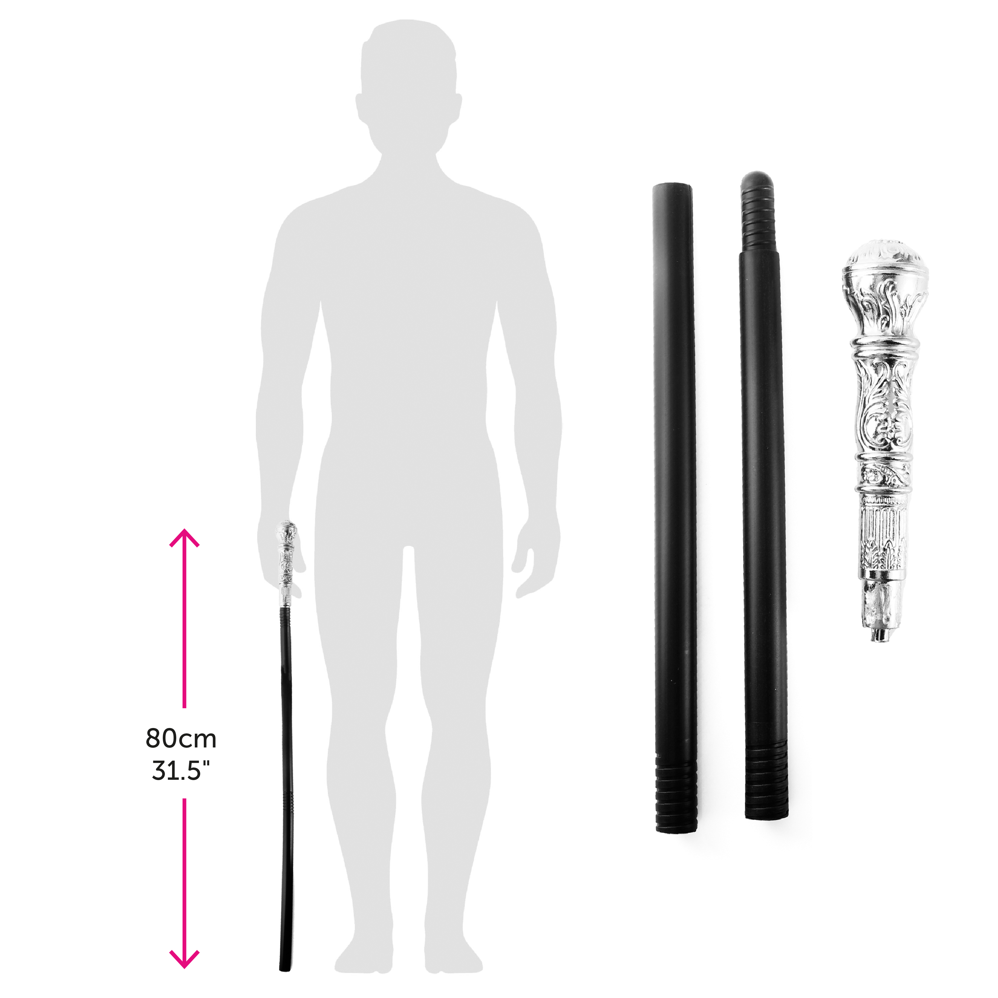 GREAT ACCESSORIES: The Latex Snake and 3 Piece Cane are great sized accessories to this set - the Life-Sized Snake measures 6ft (183cm/72")in length and once the 3 Pieces are screwed together, the Silver Top Cane measures a full length of 80cm (31.5")