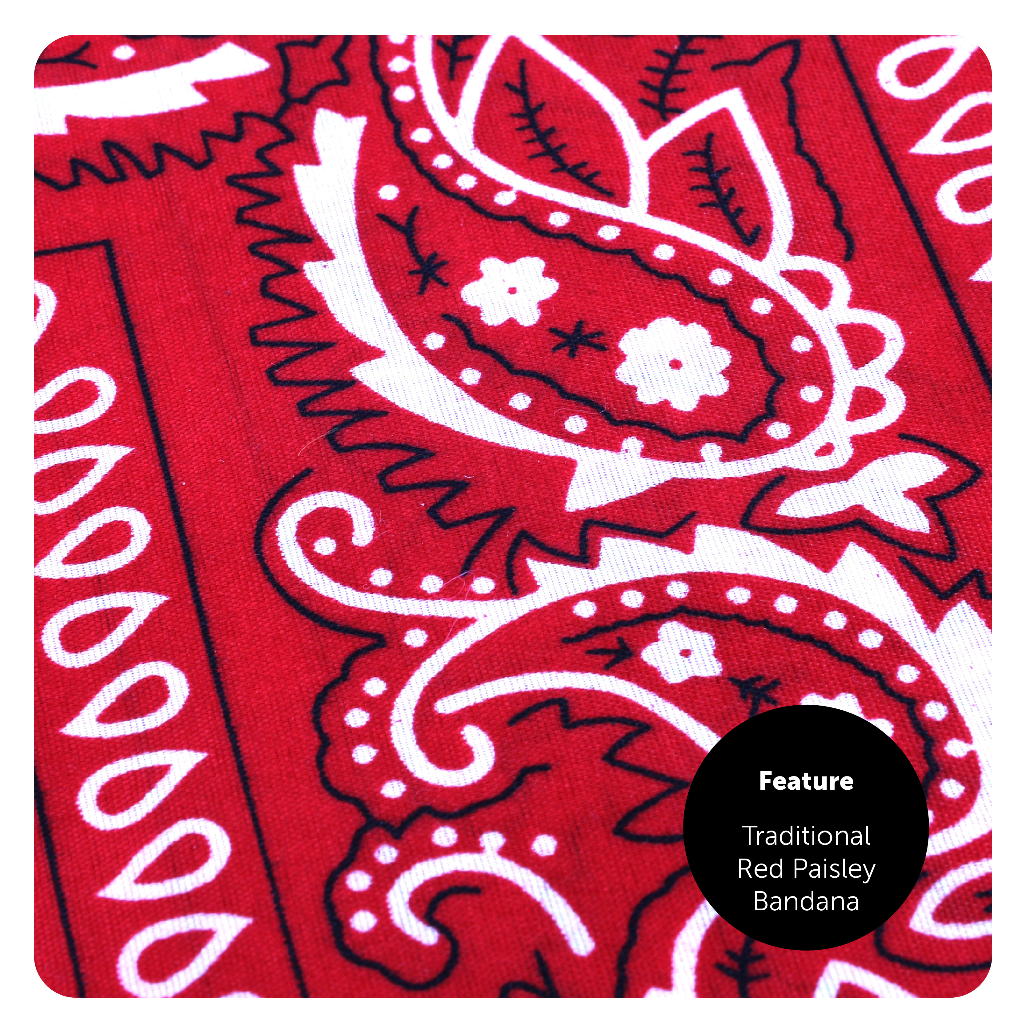 GREAT SIZED ACCESSORY: The Red Paisley Bandana measures 55cm x 55cm (21.5" x 21.5"), and can be adjusted to fit perfectly!