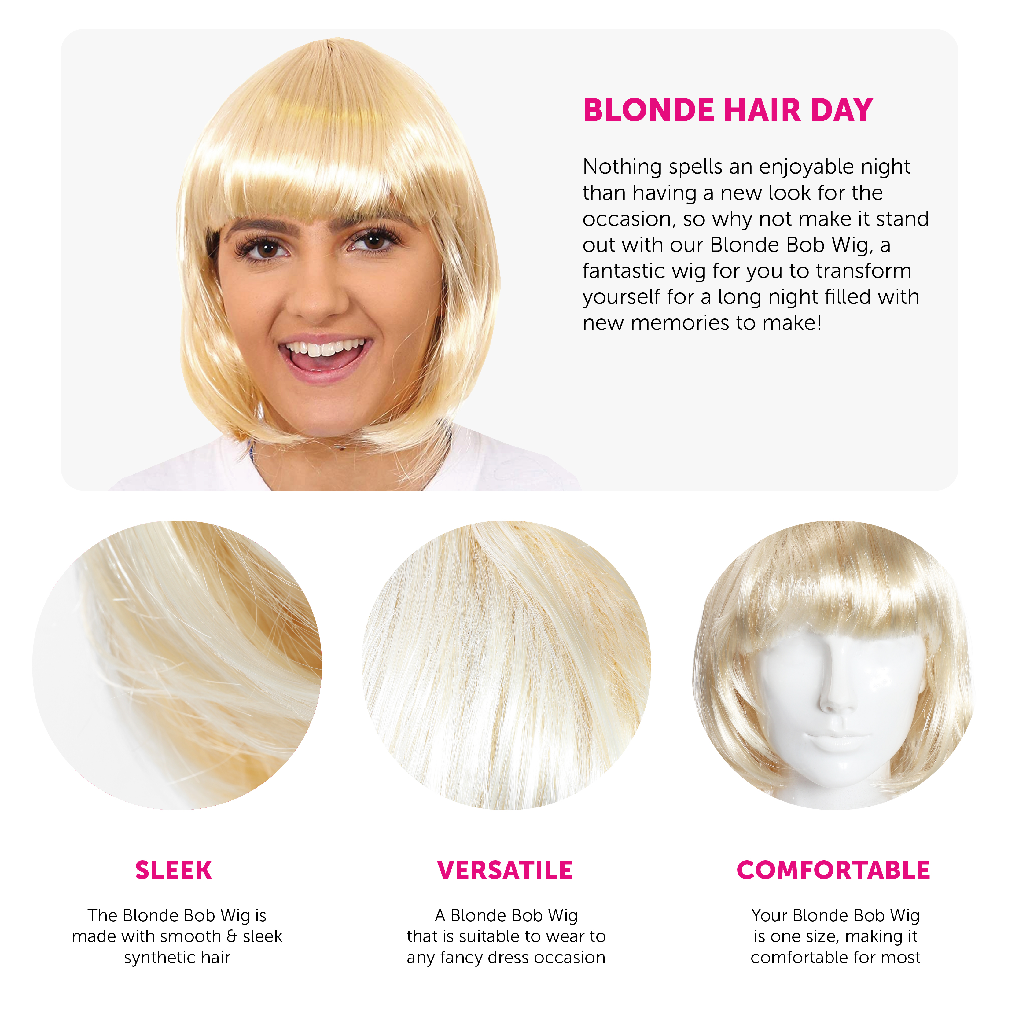 PERFECT FOR FANCY DRESS AND CASUAL EVENTS: Whether you are looking to finish off a regular Fancy Dress outfit, or to dress up for a big Hen-do night party or event, you can be sure to count on our Blonde Bob Wig for making some great memories!