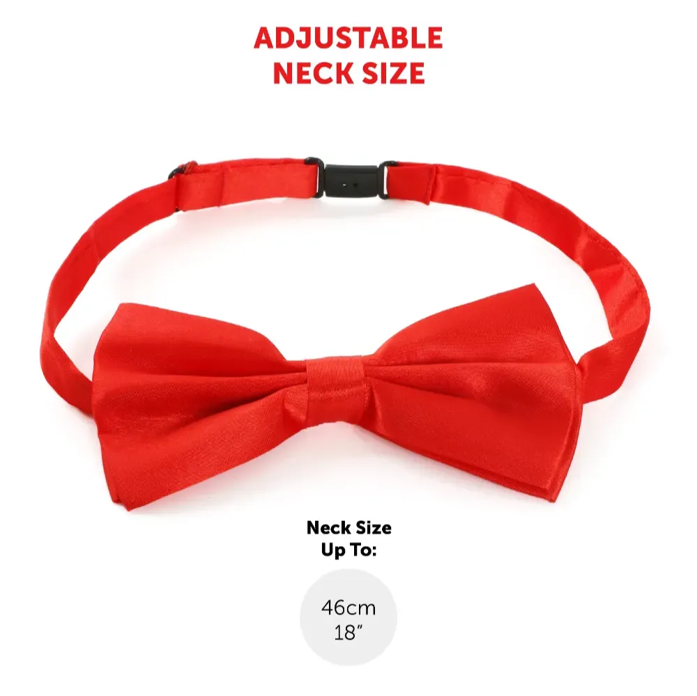 Tie the look together with a bright red satin bow tie — adjustable and easy to wear, it adds that classic puppet flair.