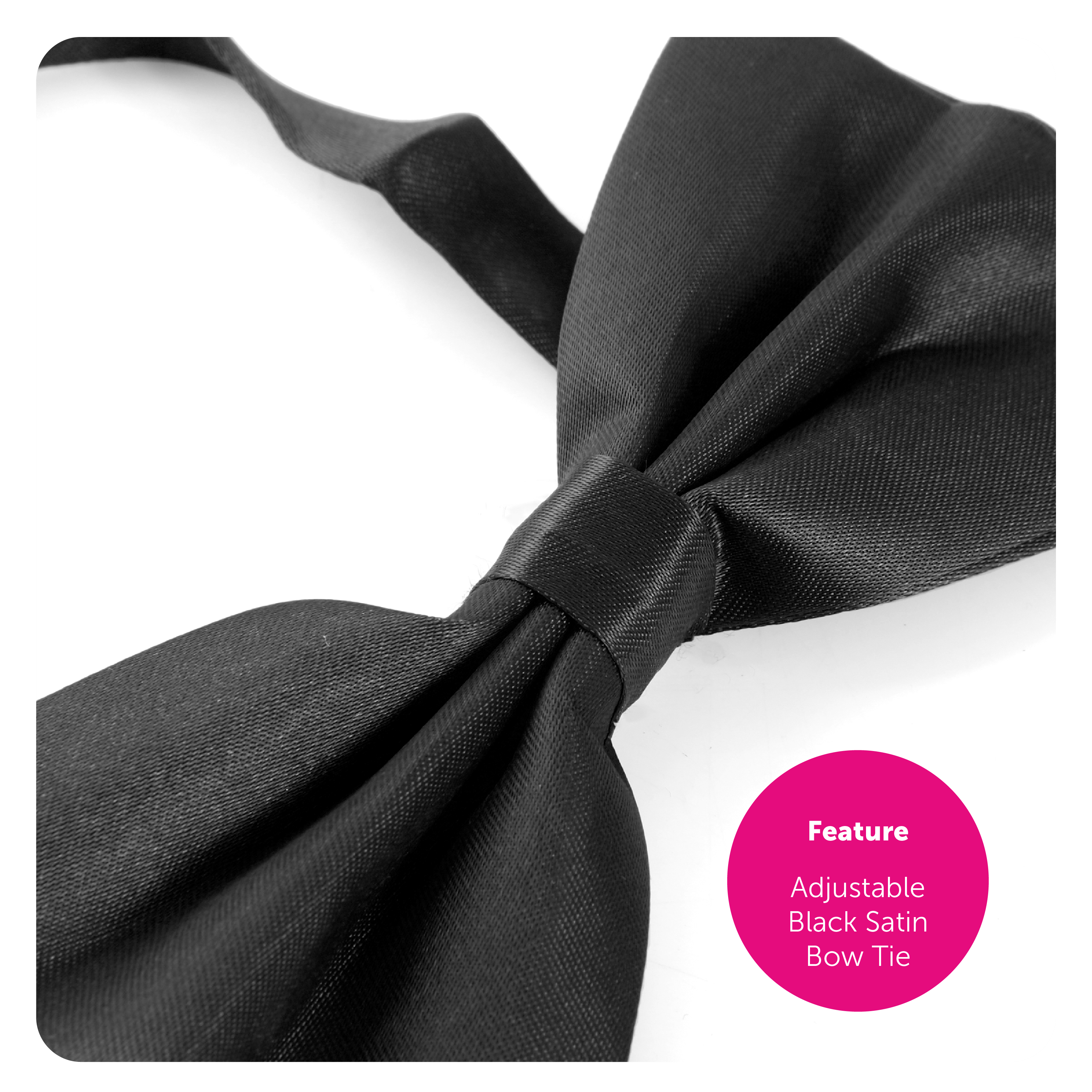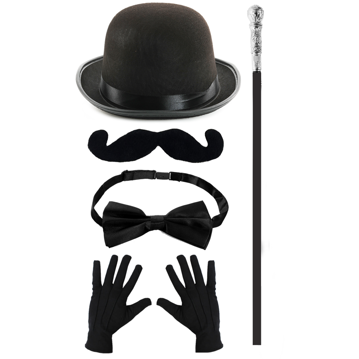 WHAT’S INCLUDED: The set includes a black bowler hat, black adhesive handlebar moustache, silver cane, black gloves, and a black bowtie, offering a complete package for a vintage detective look.