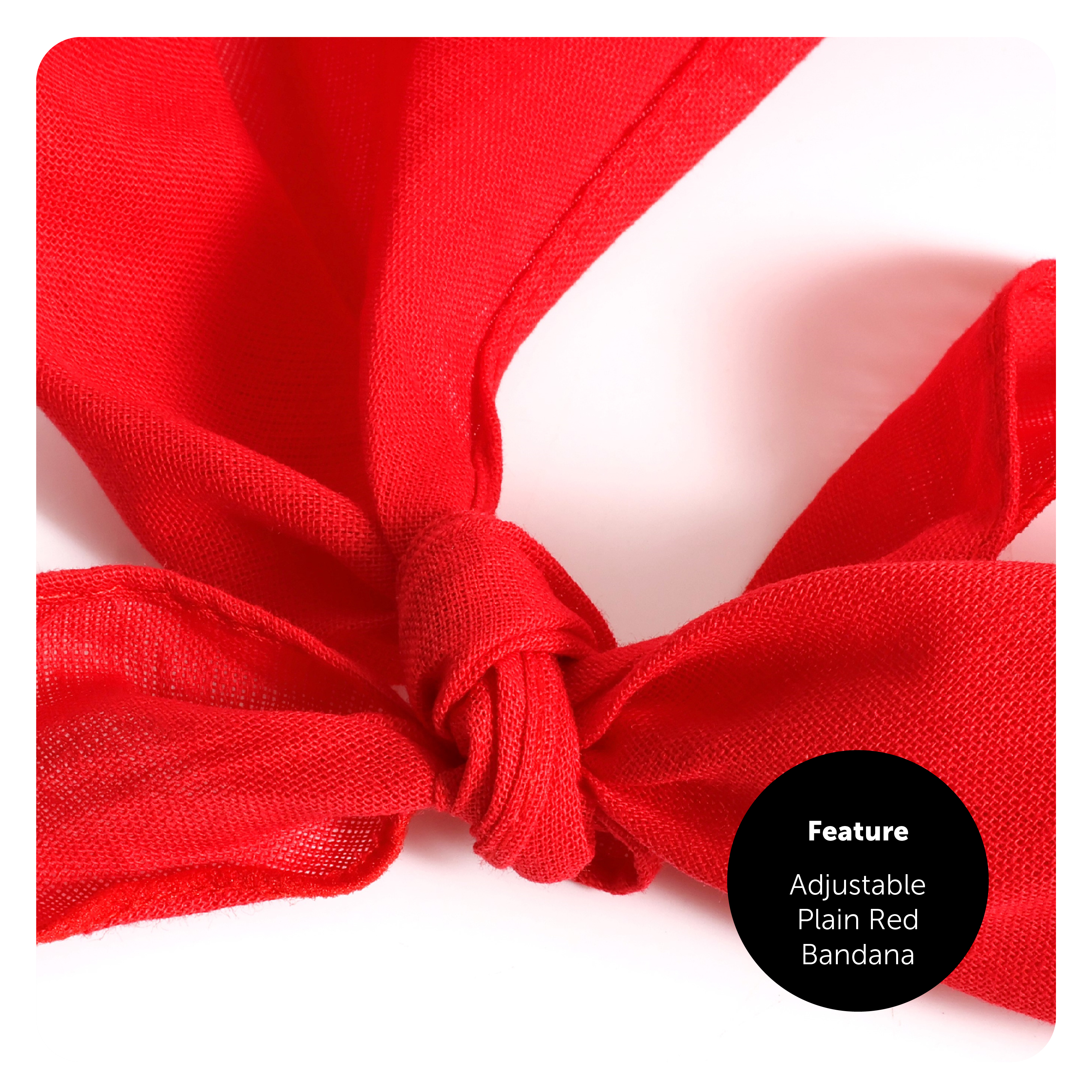The set includes a red bandana, yellow sunglasses, yellow sweatbands, a blonde moustache, and two feather boas — one yellow and one red — giving you extra flair to fully channel that larger-than-life wrestling style.